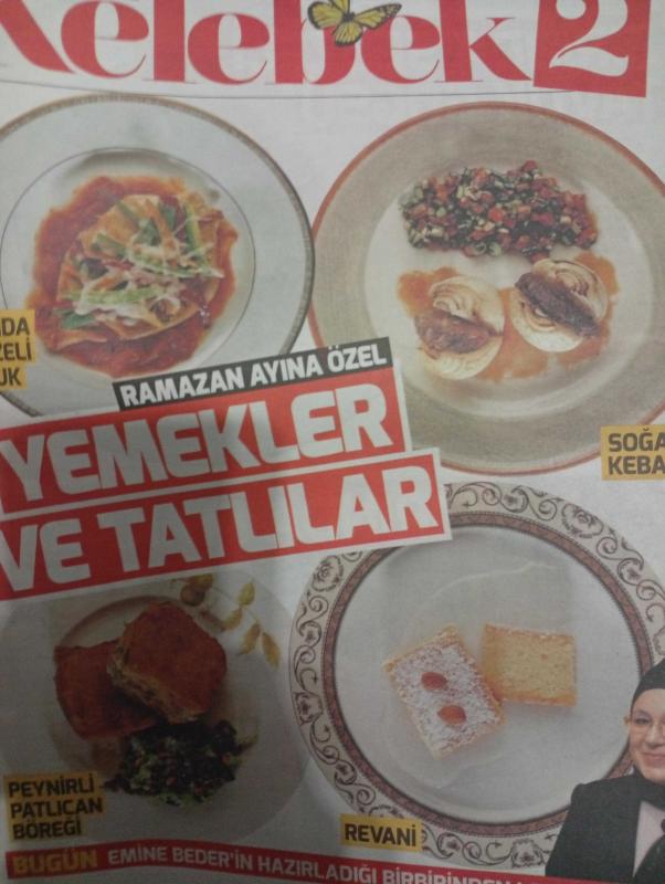 HÜRRİYET GAZETESİ HÜRRİYET KELEBEK 2 GAZETESİ DOĞUM GÜNÜ GAZETESİ - 6 haziran 2017 - Emine Beder'in hazırladığı birbirinden lezzetli tarifler-yemekler ve tatlılar-fırında sebzeli tavuk-soğan kebabı-revani-peynirli patlıcan böreği-bayat ekmek pizzası-sebzeli erişte-fırında sebzeli tavuk göğsü-fırında makarna- ceviz bohçası böreği-bulgurlu köfte-soğan kebabı-vişneli küp-talaş böreği-, Sedat Simavi tarafından kaleme alınmıştır. HÜRRİYET GAZETESİ HÜRRİYET KELEBEK 2 GAZETESİ DOĞUM GÜNÜ GAZETESİ - 6 haziran 2017 - Emine Beder'in hazırladığı birbirinden lezzetli tarifler-yemekler ve tatlılar-fırında sebzeli tavuk-soğan kebabı-revani-peynirli patlıcan böreği-bayat ekmek pizzası-sebzeli erişte-fırında sebzeli tavuk göğsü-fırında makarna- ceviz bohçası böreği-bulgurlu köfte-soğan kebabı-vişneli küp-talaş böreği- adlı eser Türkçe dilindedir.