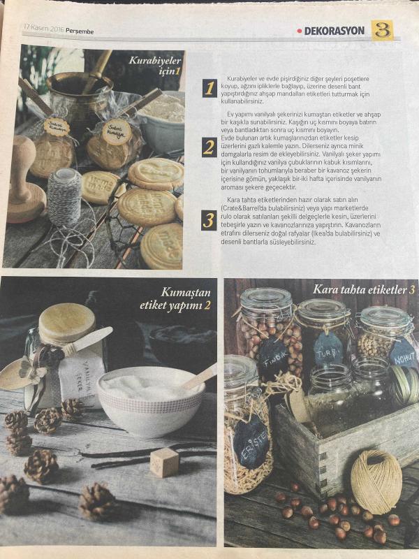 HÜRRİYET GAZETESİ HÜRRİYET KELEBEK GAZETESİ KELEBEK 2 GAZETESİ DOĞUM GÜNÜ GAZETESİ - 17 KASIM 2016 - Misafirler gelsin çaylar demlensin - Ev yapımı lezzetlere yaratıcı sunumlar - Çayın tarihçesi - Ev yapımı lezzetler için yaratıcı sunumlar - Kurabiyeler için - Kumaştan etiket yapımı - Kara tahta etiketler - Bakır levhalar - Desenli bantlarla güzelleştirin - Kara tahta ile süsleme - Keyifli bir ritüel: Çay - Rengarenk - Alışveriş adresleri - İyi fikir - Çay demlemenin püf noktaları - Shen Nung - Karaca - Tantitoni - Portland - Mudo Concept - Tepe Home - İkea - Marks&Spencer - Maxxdepo - Koçtaş - Villeroy&Boch