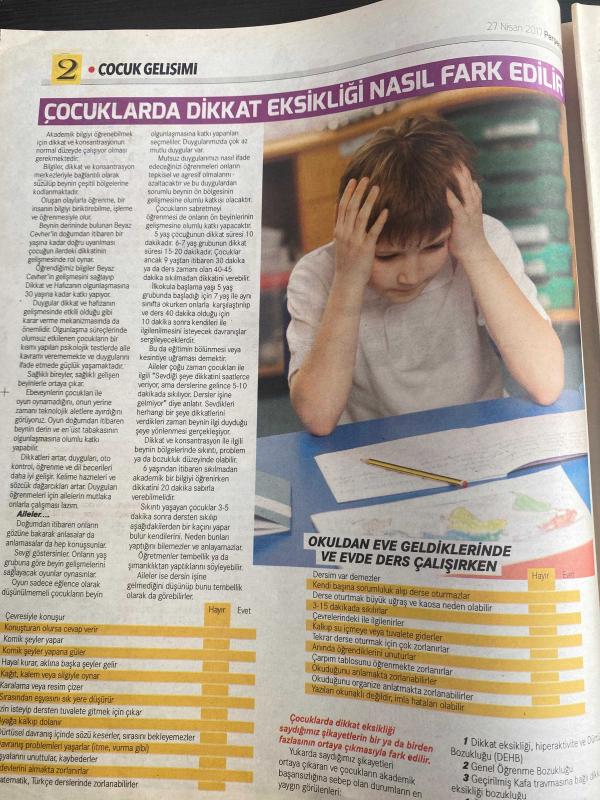 HÜRRİYET GAZETESİ HÜRRİYET KELEBEK GAZETESİ KELEBEK 2 GAZETESİ DOĞUM GÜNÜ GAZETESİ - 27 NİSAN 2017 -Çocuk gelişimi rehberi - İnternet bağımlılığı nedir? - Dikkat eksikliği nasıl fark edilir? - Öğrenme zorluğu ve disleksi nedir? - Epilepsi nasıl tedavi edilir? - Çocuğunuzu kıyaslamanın sakıncaları nelerdir? - Migren ve migreni tetikleyen yiyecekler - Çocuklar neden yalan söyler? - Dikkat eksikliği, hiperaktivite ve öğrenme zorluğunun nedenleri - Şımarıklık değil beynin olgunlaşma bozukluğu - Neurobiofeedback tedavi yöntemi nedir - Tanju Sürmeli adlı eser, Kitap > Süreli Yayınlar > Gazeteler > Türkiye > Genel > Günlük kategorisinde İkinci El olarak satıştadır.