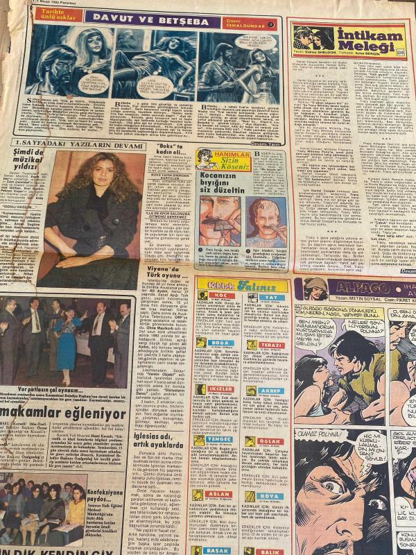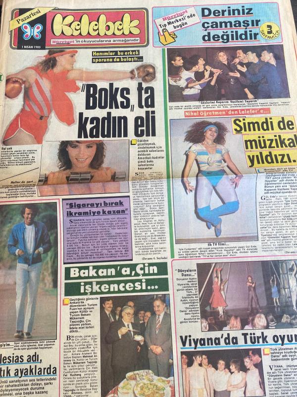 HÜRRİYET GAZETESİ HÜRRİYET KELEBEK GAZETESİ KELEBEK EV GAZETESİ DOĞUM GÜNÜ GAZETESİ - 1 NİSAN 1985 - Boks’ta kadın eli – Mel Çolak Sigarayı bırak kırmızı ekrana kazan – Julio Iglesias Gözlerimi kaparım vazifemi yaparım – Nihal Öğretmen – Yavuz Turgul Bakan’a Çin işkencesi – Mükerrem Taşçıoğlu – Ali Bozer Viyana’da Türk oyunu – Ali Aydın Vurun Kahpeye – Fatma Girik – Halide Edip Adıvar – Memduh Ün – Muhşem Demirağ – Salih Kırmızı – Uğur Süer – Emel Elitaş – Nevin Aypar – Ahmet Evin – Safa Önal Memo – Zihni Alpan – Sami Hazinses – Elhsin Burak – Bülent Buğrul – Yener Çakmak Beyaz Gece – İrfan Tözüm – Yaprak Özdemiroğlu – Cemil Perçin – Selçuk Turanlı – Hülya Tığlıalp – Bülent Oran Deriniz çamaşır değildir – Prof. Dr. Türkan Saylan Davut ve Betşeba – Cemal Dündar İntikam Meleği – Sidney Sheldon – Azize Bergin Kaderin cilveleri – Kamil Başaran – Hakkı üdeyman – Zahra Tan – Nezaket Hanım Rumuz Gonca Gül – Oktay Arayıcı – Adile Naşit – Talat Bulut – İsmet Ay – Özcan Özgür – Bülent Bilgiç, Sedat Simavi tarafından kaleme alınmıştır. HÜRRİYET GAZETESİ HÜRRİYET KELEBEK GAZETESİ KELEBEK EV GAZETESİ DOĞUM GÜNÜ GAZETESİ - 1 NİSAN 1985 - Boks’ta kadın eli – Mel Çolak Sigarayı bırak kırmızı ekrana kazan – Julio Iglesias Gözlerimi kaparım vazifemi yaparım – Nihal Öğretmen – Yavuz Turgul Bakan’a Çin işkencesi – Mükerrem Taşçıoğlu – Ali Bozer Viyana’da Türk oyunu – Ali Aydın Vurun Kahpeye – Fatma Girik – Halide Edip Adıvar – Memduh Ün – Muhşem Demirağ – Salih Kırmızı – Uğur Süer – Emel Elitaş – Nevin Aypar – Ahmet Evin – Safa Önal Memo – Zihni Alpan – Sami Hazinses – Elhsin Burak – Bülent Buğrul – Yener Çakmak Beyaz Gece – İrfan Tözüm – Yaprak Özdemiroğlu – Cemil Perçin – Selçuk Turanlı – Hülya Tığlıalp – Bülent Oran Deriniz çamaşır değildir – Prof. Dr. Türkan Saylan Davut ve Betşeba – Cemal Dündar İntikam Meleği – Sidney Sheldon – Azize Bergin Kaderin cilveleri – Kamil Başaran – Hakkı üdeyman – Zahra Tan – Nezaket Hanım Rumuz Gonca Gül – Oktay Arayıcı – Adile Naşit – Talat Bulut – İsmet Ay – Özcan Özgür – Bülent Bilgiç adlı eser Türkçe dilindedir.
