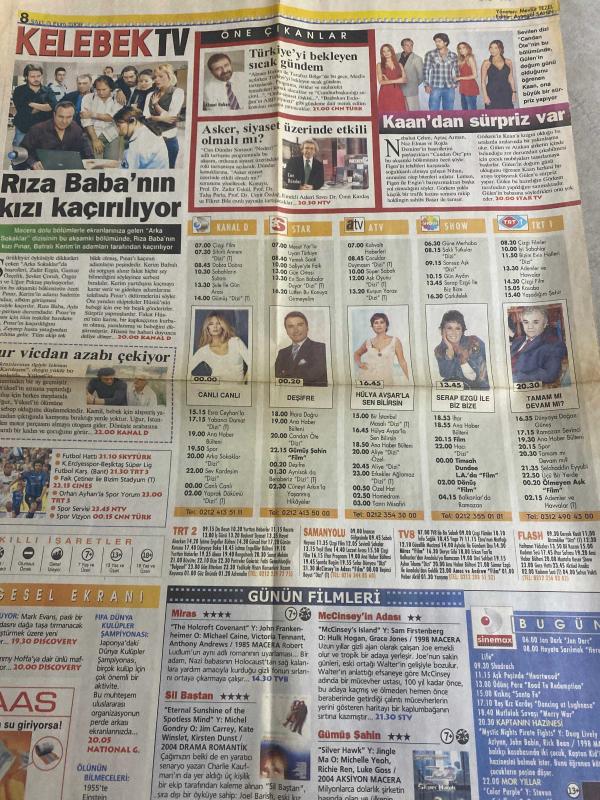 HÜRRİYET GAZETESİ HÜRRİYET KELEBEK GAZETESİ KELEBEK EV GAZETESİ DOĞUM GÜNÜ GAZETESİ - 3 Ekim 2006 - gamze Turgut sauzeat kimdir-sakın azalan şampuanı su eklemeyin-Ulaş tosun-milletvekiline vay yavrum vay diyen bakan kimdi-egemen bostancı-bakan taşçıoğlu-divan restoranları-Hulusi tunca-Sinem Vural-dondurmam kaymağı yönetmeni-Turan Özdemir-Yücel Aksu-Azerbaycan’da büyük ilgi-darbe yok türkü var- mangadan 2007’de yeni albüm-Beyza Durmaz-arka Sokaklar-Rıza Baba’nın kızı kaçırılıyor-Ahmet Hakan-nebahat Çehre-Aytaç Arman-Rojda demirer-candan öte dizisi-Can Dündar soruyor-Hülya Avşar‘la sen bilirsin-Serap ezgü ile biz bize-sev kardeşim dizisi-Sil baştan-gümüş Şahin-miras- adlı eser, Kitap > Süreli Yayınlar > Gazeteler > Türkiye > Genel > Günlük kategorisinde İkinci El olarak satıştadır.
