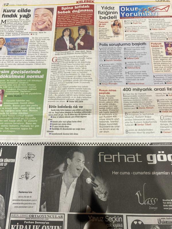 HÜRRİYET GAZETESİ HÜRRİYET KELEBEK GAZETESİ KELEBEK EV GAZETESİ DOĞUM GÜNÜ GAZETESİ - 7 NİSAN 2006 - Ferhat Göçer-Yavuz Seçkin-Seni Seviyorum-Sezai Aydın-Zeyno Günenç-Şencan güleryüz-Gamze özçelik-Fatma Murat-Engin Günaydın stand up-Ferhan Şensoyun kiralık oyun-Demi Moore-okur yorumları-Gülin Bulduk-Serdar tekeli-Osman Sarı-Arman İlhanoğlu-Bayram sarıaslan-Sedanur çelik-Özgür koç-Volkan akdeniz-Aylin Mutlu-Sibel Akkol-Suna Dumankaya-Türkan şoray-fıkralarla Türkiye-editör/NBA stüdyo-Ercan Saatçi-Erol Köse-Deniz Seki-Şahan ve Togan Gökbakar kardeşler-Beyazıt öztürk-Hayat Bilgisi adlı eser, Kitap > Süreli Yayınlar > Gazeteler > Türkiye > Genel > Günlük kategorisinde İkinci El olarak satıştadır.
