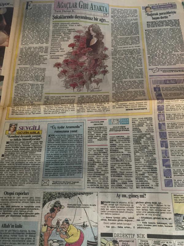 HÜRRİYET GAZETESİ HÜRRİYET KELEBEK GAZETESİ KELEBEK EV GAZETESİ DOĞUM GÜNÜ GAZETESİ - 8 EYLÜL 1990 - kelebek falını-Koç-terazi-boğa-akrep-ikizler-yay-yengeç-oğlak-aslan-kova-Başak-balık-Mesut Çakarlı-memo-Zeki alpan-Süheyl eğriboz-Şema göktaş-Sami-ersin Burak-uğur banoğlu-yener çakmak-Alpago-metin soysal-Fikret kol-sorularınız ve cevaplarınız-Bizimkiler-coptrıght H.Y.-Güngörmüşler-fatoş-dedektif Nik-chıc young-Kavanagh-Miras-İntikam meleği-Sidney Sheldon-Azize Bergin-Tolga Savacı-Sabit arı-ithalfoto-Bedri Baykam-İlknur Bozkurt-Tarık Dursun-Leyla İsmier-Sting-Michael Tse-Sevgili Güzin abla-Ağaçlar gibi ayakta-Orhan Aksoy-Kemal Sunal-Nilgün Belgün-Birgül Köseoğlu adlı eser, Kitap > Süreli Yayınlar > Gazeteler > Türkiye > Genel > Günlük kategorisinde İkinci El olarak satıştadır.
