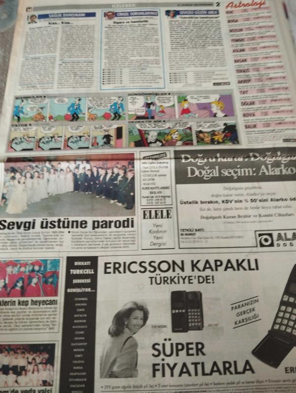 HÜRRİYET GAZETESİ HÜRRİYET KELEBEK GAZETESİ KELEBEK TV GAZETESİ DOĞUM GÜNÜ GAZETESİ -30 Haziran 1994- prizma-dünya kupası-at yarışları- yunanistan-nijerya-arjantin-bulgaristan-eski Eser kaçakçılığı-Mehpare Çelik- sekreter de oyuncu oldu-filiz Öcal-av peşinde-hüseyin keten- Cengiz semercioğlu-pastalı kutlama- kenter tiyatrosu- hastaneler komada-tehlikeli moda- doçent Doktor Zeki karagül'e-kadriye yüksel-nevzat takmaz-ismail güçlü-fuat bayram-hüseyin keten-bülent Ovacık- ayten senger- astroloji- bir şeytan-çılgın biniciler-gece haberleri-3 sayfa- günün içinden-suikast-dehşetin bebeği-ölüm emri-vahşi dünya-davaro- kemal Sunal- sevgili Güzin abla-sağlık danışmanı-cinsel sorunlarınız-karikatür- Alarko doğalgaz-Ericsson- miniklerin kep heyecanı-sevgi üstüne parodi, Sedat Simavi tarafından kaleme alınmıştır. HÜRRİYET GAZETESİ HÜRRİYET KELEBEK GAZETESİ KELEBEK TV GAZETESİ DOĞUM GÜNÜ GAZETESİ -30 Haziran 1994- prizma-dünya kupası-at yarışları- yunanistan-nijerya-arjantin-bulgaristan-eski Eser kaçakçılığı-Mehpare Çelik- sekreter de oyuncu oldu-filiz Öcal-av peşinde-hüseyin keten- Cengiz semercioğlu-pastalı kutlama- kenter tiyatrosu- hastaneler komada-tehlikeli moda- doçent Doktor Zeki karagül'e-kadriye yüksel-nevzat takmaz-ismail güçlü-fuat bayram-hüseyin keten-bülent Ovacık- ayten senger- astroloji- bir şeytan-çılgın biniciler-gece haberleri-3 sayfa- günün içinden-suikast-dehşetin bebeği-ölüm emri-vahşi dünya-davaro- kemal Sunal- sevgili Güzin abla-sağlık danışmanı-cinsel sorunlarınız-karikatür- Alarko doğalgaz-Ericsson- miniklerin kep heyecanı-sevgi üstüne parodi adlı eser Türkçe dilindedir.