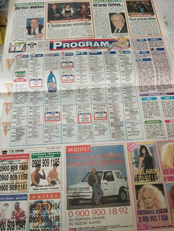 HÜRRİYET GAZETESİ HÜRRİYET KELEBEK GAZETESİ KELEBEK TV GAZETESİ DOĞUM GÜNÜ GAZETESİ -9 Kasım 1993- TV kelebek program-astroloji-sevgili Güzin abla-cinsel sorunlarınız-sağlık danışmanı-alo show-karikatür- galiba çıldıracağım-çok şişiyorum-kadında eşcinsel duygu-doktor gündüz tezman-psikolog Doktor muhteşem Nejad- borsanın Yıldızı Nurseli İdiz kürtaj masasında-eserinin zor günü-eve dönüş-Sissy spacek- Ekrem bat-tarih Kül oldu- atılın çocuğundan kurtulacak- dayı kazıma büyük işkence-tetikçi Kemal bulunamıyor- hakim bey-edip akbayram-filiz özmen-yonca evcimik-tuna serim- Hababam Sınıfı Sınıfta Kaldı- kemal sunal-atıf yılmaz-türkan şoray-kadir inanır-ahmet Mekin- havva kopan- sibel gökçe-taneli- asıl günah-tehlikeli görev-takvim kız cinayeti-çok şey bilen adam-ay Harekatı kısa çizginin gölgesi-yağmuru başladı- battaniye giyilir de- uluslararası sanatçılar-suyu arayan adam- hasan pulur-kenan Evren adlı eser, Kitap > Süreli Yayınlar > Gazeteler > Türkiye > Genel > Günlük kategorisinde İkinci El olarak satıştadır.
