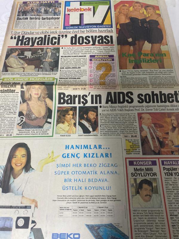HÜRRİYET GAZETESİ HÜRRİYET KELEBEK TV GAZETESİ - 10 Haziran 1993-Gündüz Tezmen-koç-Aslan-yay-boğa-Başak-oğlak-ikizler-Terazi-kova-yengeç-akrep-balık-Muhteşem Nejad-Güzin Abla-güngörmüşler-bizimkiler-fatoş-dedektif Nik-Cengiz Semercioğlu-Yıldırım Cavlı-hayalici dosyası-dazlak terörist kaldırılıyor-kaç paranın İngilizleri-barışın aıds sohbeti-milli-İzmir'den müzikli esintiler-sürpriz hediye-dokuzuncu hariciye Koğuşu-Sunal yine güldürecek-şendulşaban-yolların Sonu-namus kanlı yazılır-hırsız-sevgili babam-Elçin'in kızı-Paris'i son gördüğümde-hayatın gerçek tadı-Kızılmaske-skandal-balayı-ölüme bir gün adlı eser, Kitap > Süreli Yayınlar > Gazeteler > Türkiye > Genel > Günlük kategorisinde İkinci El olarak satıştadır.