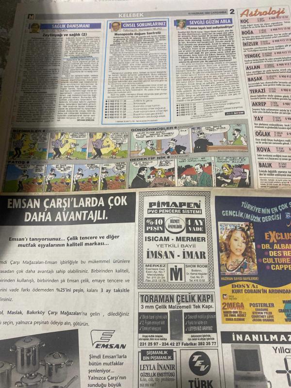 HÜRRİYET GAZETESİ HÜRRİYET KELEBEK TV GAZETESİ - 15 Haziran 1994 - Gündüz Tezmen-koç-Aslan-yay-boğa-Başak-oğlak-ikizler-Terazi-kova-yengeç-akrep-balık-Muhteşem Nejad-Güzin Abla-güngörmüşler-bizimkiler-fatoş-dedektif Nik-Cengiz Semercioğlu-Yıldırım Cavlı-Selim Genç-Express haber ajansı-çarşı mağazaları-Türkiye eğitim vakfı-tekno data-Pimapen—cesur ve güzel-donanma kaplanları-öğretmen Zeynep-Hülya Avşar-Savcı-Kadir İnanır-Yavuz Sultan Selim ve yeniçeri Hasan-Ayla Karaca-Münir Özkul-Ayhan Işık-Güler kazmacı-Cem kurtoğlu-anti faşist grup-Die toten hosen-mehbare Çelik-Bülent Ersoy-, Sedat Simavi tarafından kaleme alınmıştır. HÜRRİYET GAZETESİ HÜRRİYET KELEBEK TV GAZETESİ - 15 Haziran 1994 - Gündüz Tezmen-koç-Aslan-yay-boğa-Başak-oğlak-ikizler-Terazi-kova-yengeç-akrep-balık-Muhteşem Nejad-Güzin Abla-güngörmüşler-bizimkiler-fatoş-dedektif Nik-Cengiz Semercioğlu-Yıldırım Cavlı-Selim Genç-Express haber ajansı-çarşı mağazaları-Türkiye eğitim vakfı-tekno data-Pimapen—cesur ve güzel-donanma kaplanları-öğretmen Zeynep-Hülya Avşar-Savcı-Kadir İnanır-Yavuz Sultan Selim ve yeniçeri Hasan-Ayla Karaca-Münir Özkul-Ayhan Işık-Güler kazmacı-Cem kurtoğlu-anti faşist grup-Die toten hosen-mehbare Çelik-Bülent Ersoy- adlı eser Türkçe dilindedir.
