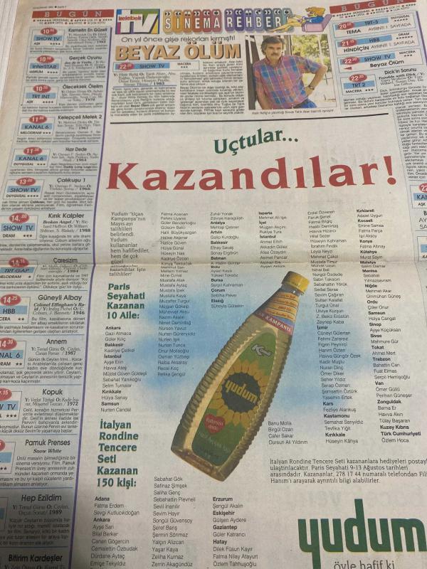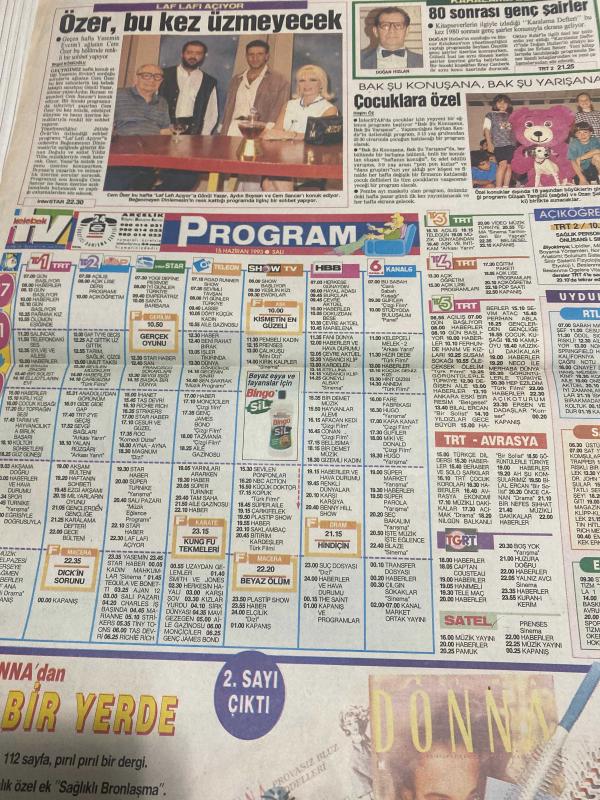 HÜRRİYET GAZETESİ HÜRRİYET KELEBEK TV GAZETESİ - 15 Haziran 1994 - Gündüz Tezmen-koç-Aslan-yay-boğa-Başak-oğlak-ikizler-Terazi-kova-yengeç-akrep-balık-Muhteşem Nejad-Güzin Abla-güngörmüşler-bizimkiler-fatoş-dedektif Nik-Cengiz Semercioğlu-Yıldırım Cavlı-cem Özertir’e laf lafı açıyor-Aydın Boysan-Gönül Yazar-Cem Sancar-Program-Doğan hızlan-haşim Öz---filiz Öcal-Okan arpaç-ekran şenlenecek-yeni türkü-final coşkuner-Demet Akba-Nuray Hafiftaş-beyaz ölüm- Tarık akkan adlı eser Türkçe dilindedir.