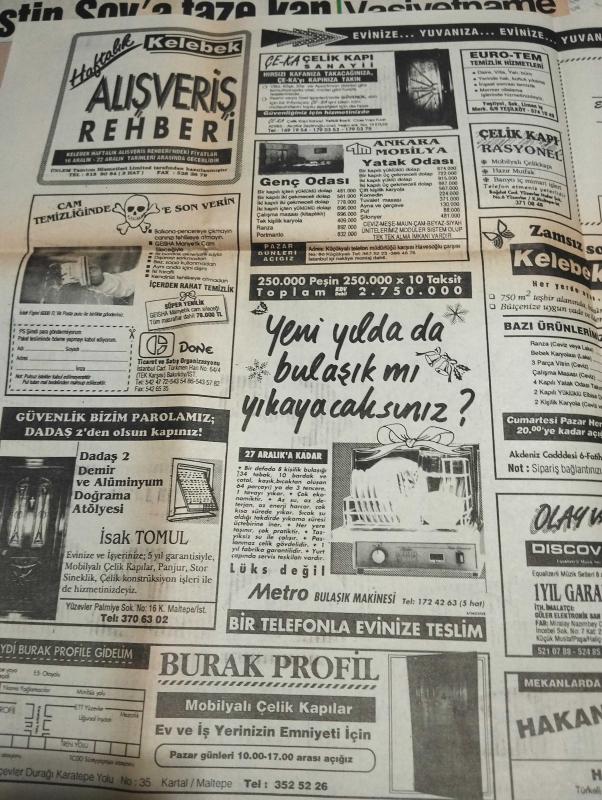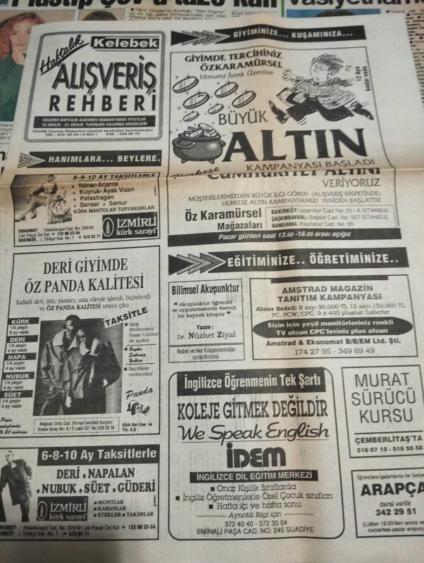 HÜRRİYET GAZETESİ HÜRRİYET KELEBEK TV GAZETESİ - 17 Aralık 1991- Hasan çapan-ibrahim çapan-elif Kıramer- çapkınların acı kaybı- Doçent Doktor Özer Ergün- Adnan Menderes- bingo- Fatma batukan-imparatorluğu hazırlanıyor-garip hırsızlık-julie canton- plastip şova taze kan- vasiyetname-hürriyet-trt- Uğur dündar-şantaj- çeşitleme-muzaffer Ertürk- Nuri ergün-ayhan ışıksu çizgi Arzu Okay- 1991 komedisi-karşı karşıya- enis Fosforoğlu- tutku-bilmemek ayıp değil-azize bergin-corci-alo ilhan irem-mary cohr- alışveriş rehberi-büyük altın kampanyası-deri giyinme özpanda kalitesi-izmirli kürk sarayı-idem-arapça- murat Sürücü Kursu- Yeni yılda da bulaşık mı yıkayacaksınız- İsak tombul-burak profil-hakan marley, SEDAT SİMAVİ tarafından kaleme alınmıştır. HÜRRİYET GAZETESİ HÜRRİYET KELEBEK TV GAZETESİ - 17 Aralık 1991- Hasan çapan-ibrahim çapan-elif Kıramer- çapkınların acı kaybı- Doçent Doktor Özer Ergün- Adnan Menderes- bingo- Fatma batukan-imparatorluğu hazırlanıyor-garip hırsızlık-julie canton- plastip şova taze kan- vasiyetname-hürriyet-trt- Uğur dündar-şantaj- çeşitleme-muzaffer Ertürk- Nuri ergün-ayhan ışıksu çizgi Arzu Okay- 1991 komedisi-karşı karşıya- enis Fosforoğlu- tutku-bilmemek ayıp değil-azize bergin-corci-alo ilhan irem-mary cohr- alışveriş rehberi-büyük altın kampanyası-deri giyinme özpanda kalitesi-izmirli kürk sarayı-idem-arapça- murat Sürücü Kursu- Yeni yılda da bulaşık mı yıkayacaksınız- İsak tombul-burak profil-hakan marley adlı eser Türkçe dilindedir.