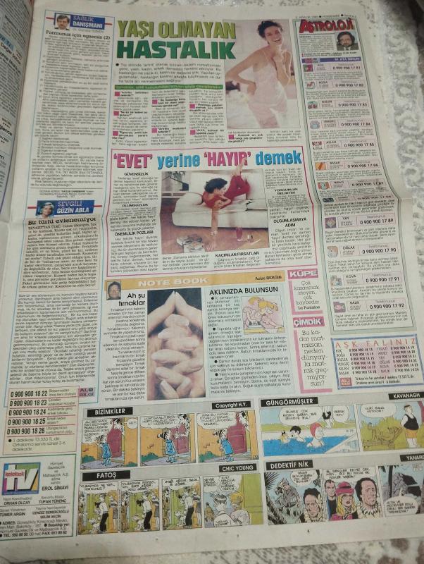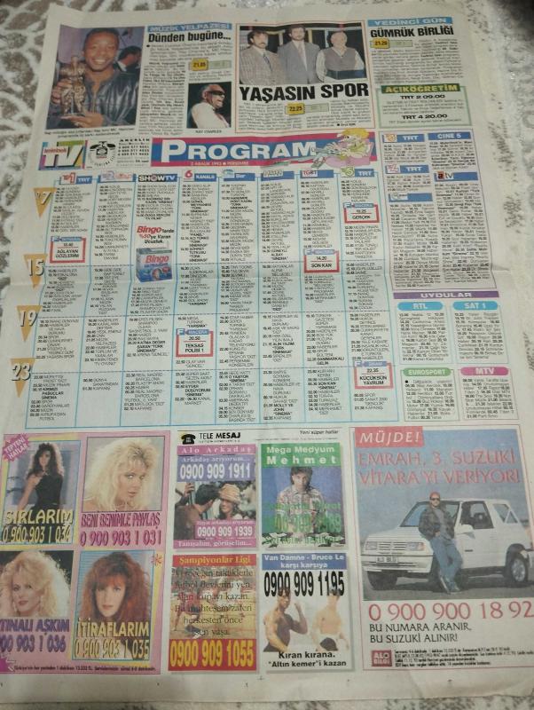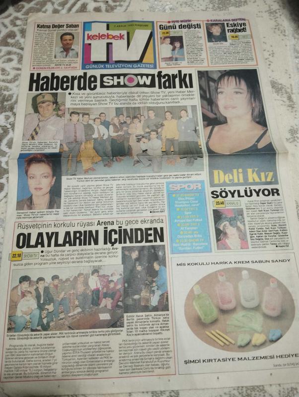 HÜRRİYET GAZETESİ HÜRRİYET KELEBEK TV GAZETESİ - 2 Aralık 1993-Gündüz Tezmen-koç-Aslan-yay-boğa-Başak-oğlak-ikizler-Terazi-kova-yengeç-akrep-balık-Muhteşem Nejad-Güzin Abla-güngörmüşler-bizimkiler-fatoş-dedektif Nik-Cengiz Semercioğlu-Yıldırım Cavlı- katıma değer şaban-kemal sunal-günü değişti-eskiye rağbet-hurşit yenigün-nazan yeşiltan-güneli gün- Show TV- Deli kız-sezen aksu-süper saat-gülümse-deli Kızın türküsü-sude- hülya Avşar- gülgün Feyman-ekrem bat- sultaş- olayların içinden- Amerikan tarzı eğlence-kırmızı pabuçlar-bağımsız bir kadın- yaşı olmayan hastalık- Yaşasın spor-gümrük birliği-dünden bugüne-ray Charles adlı eser, Kitap > Süreli Yayınlar > Gazeteler > Türkiye > Genel > Günlük kategorisinde İkinci El olarak satıştadır.