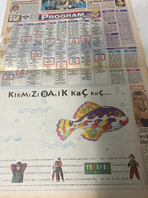 HÜRRİYET GAZETESİ HÜRRİYET KELEBEK TV GAZETESİ - 23 Ekim 1993 -Gündüz Tezmen-koç-Aslan-yay-boğa-Başak-oğlak-ikizler-Terazi-kova-yengeç-akrep-balık-Muhteşem Nejad-Güzin Abla-güngörmüşler-bizimkiler-fatoş-dedektif Nik-Cengiz Semercioğlu-Yıldırım Cavlı-Fatmagül'ün suçu ne-vur patlasın çal oynasın-zehir Kabare-şamata başlıyor-hayalden öte-Çocuk tiyatrosu kuralım-Modern klasikler-güzel olmak elinizde-bir resim yarışması var-elma şekeri-kırmızı balık kaç kaç-sevilen klipler-Yüksel uzel-benim hayatım roman adlı eser, Kitap > Süreli Yayınlar > Gazeteler > Türkiye > Genel > Günlük kategorisinde İkinci El olarak satıştadır.