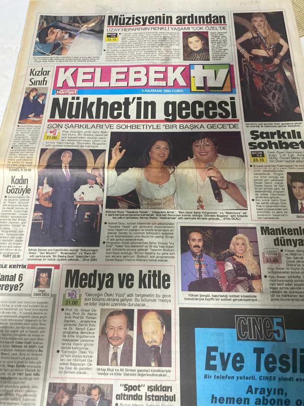 HÜRRİYET GAZETESİ HÜRRİYET KELEBEK TV GAZETESİ -3 Haziran 1994 -Gündüz Tezmen-koç-Aslan-yay-boğa-Başak-oğlak-ikizler-Terazi-kova-yengeç-akrep-balık-Muhteşem Nejad-Güzin Abla-güngörmüşler-bizimkiler-fatoş-dedektif Nik-Cengiz Semercioğlu-Yıldırım Cavlı-müzisyenin ardından-şarkılı sohbet-medya ve kitle-eve teslim-oktay ekşi-Mısır çocukları-şeytanlar-gizli oda-fabrikadan halka mutfak-refakatçi arıyorum-İstanbul'u kucaklayan-ilk zinciri ilk başarı-alkışlı protesto-bu facialar yaşamayalım-veysi Şahin-Hürriyet uymaz, SEDAT SİMAVİ tarafından kaleme alınmıştır. HÜRRİYET GAZETESİ HÜRRİYET KELEBEK TV GAZETESİ -3 Haziran 1994 -Gündüz Tezmen-koç-Aslan-yay-boğa-Başak-oğlak-ikizler-Terazi-kova-yengeç-akrep-balık-Muhteşem Nejad-Güzin Abla-güngörmüşler-bizimkiler-fatoş-dedektif Nik-Cengiz Semercioğlu-Yıldırım Cavlı-müzisyenin ardından-şarkılı sohbet-medya ve kitle-eve teslim-oktay ekşi-Mısır çocukları-şeytanlar-gizli oda-fabrikadan halka mutfak-refakatçi arıyorum-İstanbul'u kucaklayan-ilk zinciri ilk başarı-alkışlı protesto-bu facialar yaşamayalım-veysi Şahin-Hürriyet uymaz adlı eser Türkçe dilindedir.