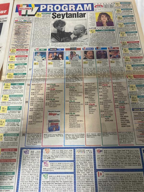 HÜRRİYET GAZETESİ HÜRRİYET KELEBEK TV GAZETESİ -3 Haziran 1994 -Gündüz Tezmen-koç-Aslan-yay-boğa-Başak-oğlak-ikizler-Terazi-kova-yengeç-akrep-balık-Muhteşem Nejad-Güzin Abla-güngörmüşler-bizimkiler-fatoş-dedektif Nik-Cengiz Semercioğlu-Yıldırım Cavlı-müzisyenin ardından-şarkılı sohbet-medya ve kitle-eve teslim-oktay ekşi-Mısır çocukları-şeytanlar-gizli oda-fabrikadan halka mutfak-refakatçi arıyorum-İstanbul'u kucaklayan-ilk zinciri ilk başarı-alkışlı protesto-bu facialar yaşamayalım-veysi Şahin-Hürriyet uymaz adlı eser, Kitap > Süreli Yayınlar > Gazeteler > Türkiye > Genel > Günlük kategorisinde İkinci El olarak satıştadır.