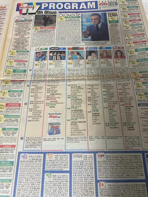 HÜRRİYET GAZETESİ HÜRRİYET KELEBEK TV GAZETESİ -4 Haziran 1994 -Gündüz Tezmen-koç-Aslan-yay-boğa-Başak-oğlak-ikizler-Terazi-kova-yengeç-akrep-balık-Muhteşem Nejad-Güzin Abla-güngörmüşler-bizimkiler-fatoş-dedektif Nik-Cengiz Semercioğlu-Yıldırım Cavlı-bakü konseri-sevgili-Türk müziği sevenlere-mahallede Kalpazan var-eve teslim-dörtnala-kız arkadaşım-ATV-olumsuz-evlat edinme-uçurtmacı ile-Türkiye türklerindir-Azerbaycan neşesi adlı eser, Kitap > Süreli Yayınlar > Gazeteler > Türkiye > Genel > Günlük kategorisinde İkinci El olarak satıştadır.