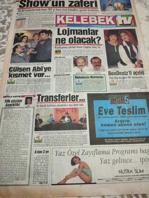 HÜRRİYET GAZETESİ HÜRRİYET KELEBEK TV GAZETESİ -6 Haziran 1994 -Gündüz Tezmen-koç-Aslan-yay-boğa-Başak-oğlak-ikizler-Terazi-kova-yengeç-akrep-balık-Muhteşem Nejad-Güzin Abla-güngörmüşler-bizimkiler-fatoş-dedektif Nik-Cengiz Semercioğlu-Yıldırım Cavlı-trt-show tv-çapraz ateş-erol ışık- gülşen abi-esat kıratlioğlu-ziya halis-cine5-cengiz semercioğlu-nutra slim-venedik gibi çekmece-marmara denizi-nevzat takmaz-nurettin şen-süleyman sarılar-ihsan yılmaz-burak ersemiz-fuat bayram-hayrettin karateke-neslihan akbayday-international slimmimg center-birkan yetkin yaz okulu-hillside clup yaz okulu-orkapsan-biz farklıyız-çekirdek-özel efdal anaokulu-pimapen-maymunlar gezegeninin fethi-ürperti-bingo-gece filmleri-orhan elmas-çapraz ateş-cine5-nutra slim- haşim öz-ziya halis, Sedat simavi tarafından kaleme alınmıştır. HÜRRİYET GAZETESİ HÜRRİYET KELEBEK TV GAZETESİ -6 Haziran 1994 -Gündüz Tezmen-koç-Aslan-yay-boğa-Başak-oğlak-ikizler-Terazi-kova-yengeç-akrep-balık-Muhteşem Nejad-Güzin Abla-güngörmüşler-bizimkiler-fatoş-dedektif Nik-Cengiz Semercioğlu-Yıldırım Cavlı-trt-show tv-çapraz ateş-erol ışık- gülşen abi-esat kıratlioğlu-ziya halis-cine5-cengiz semercioğlu-nutra slim-venedik gibi çekmece-marmara denizi-nevzat takmaz-nurettin şen-süleyman sarılar-ihsan yılmaz-burak ersemiz-fuat bayram-hayrettin karateke-neslihan akbayday-international slimmimg center-birkan yetkin yaz okulu-hillside clup yaz okulu-orkapsan-biz farklıyız-çekirdek-özel efdal anaokulu-pimapen-maymunlar gezegeninin fethi-ürperti-bingo-gece filmleri-orhan elmas-çapraz ateş-cine5-nutra slim- haşim öz-ziya halis adlı eser Türkçe dilindedir.