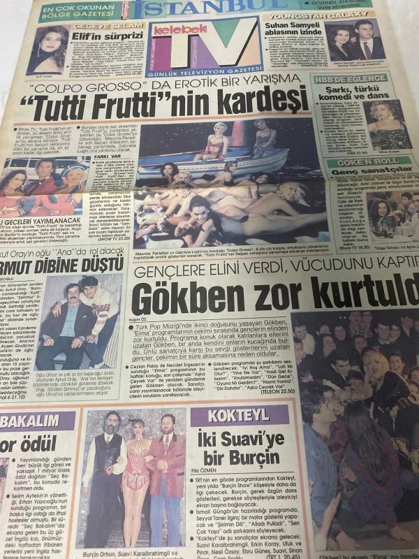 HÜRRİYET GAZETESİ HÜRRİYET KELEBEK TV GAZETESİ - 9 Ocak 1993 -Gündüz Tezmen-koç-Aslan-yay-boğa-Başak-oğlak-ikizler-Terazi-kova-yengeç-akrep-balık-Muhteşem Nejad-Güzin Abla-güngörmüşler-bizimkiler-fatoş-dedektif Nik-Cengiz Semercioğlu-Yıldırım Cavlı-tutti frutti'nin kardeşi-Elif'in sürprizi-şarkı türkü komedi ve dans-genç sanatçılar-gökmen zor kurtuldu-armut dibine düştü-belediyede uyandı-film bitti-kafasını kopardılar-pırlanta amatör-yaşlı Çifte infaz-sokak ortasında ölüm tuzağı-pembe kol-deli Emine-herhangi şeyler-nejat Uygur-hayvan mezarlığı-beyazlar beceremez- haydi yeni alışkanlıklara-rekortmen dispanser-herkes alacak-Ankara mobilya-Boğaziçi-Kaymakamlar zirvesi- adlı eser, Kitap > Süreli Yayınlar > Gazeteler > Türkiye > Genel > Günlük kategorisinde İkinci El olarak satıştadır.