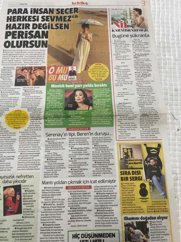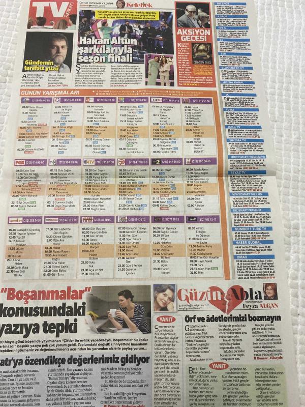 HÜRRİYET GAZETESİ HÜRRİYET KELEBEK TV GAZETESİ DOĞUM GÜNÜ GAZETESİ - 31 Mayıs 2021 - Gündüz Tezmen-koç-Aslan-yay-boğa-Başak-oğlak-ikizler-Terazi-kova-yengeç-akrep-balık-Türkan Şoray-Ajda Pekkan-para insan seçer herkesi sevmez hazır değilsen perişan olursun-Akasya Aslı Türkmen-Nil Karaibrahimgil-bu güne şükranla-lütfü-Sait Durmaz-engin Öztürk-boşanmalar konusundaki yazıya tepki-güzin abla-Feyza algan-rumuz Zübeyde-aksiyon gecesi-Hakan altun şarkılarıyla sezon finali- Ahmet Hakan-Merve Özbey-Koray Avcı-Özlem Şahin adlı eser, Kitap > Süreli Yayınlar > Gazeteler > Türkiye > Genel > Günlük kategorisinde İkinci El olarak satıştadır.