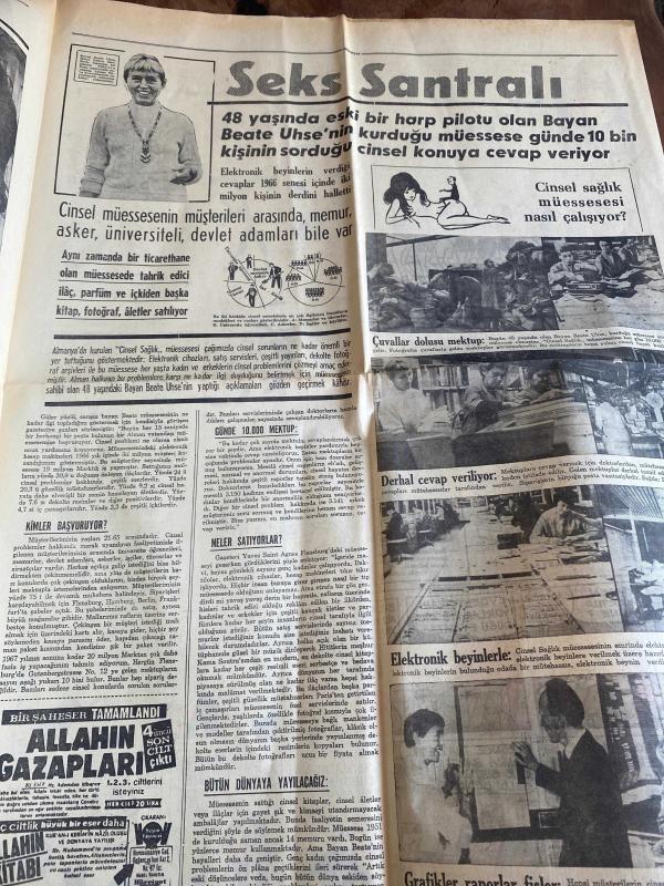 HÜRRİYET GAZETESİ HÜRRİYET PAZAR EXTRA 2 GAZETESİ DOĞUM GÜNÜ GAZETESİ - 20 AĞUSTOS 1967 - Bizimkiler - Fatoş - Güngörmüşler - Kemal Bisalman - Hers Albey Peter Townsend - Tony - Dr. Beranger - Beate Uhse - Prenses Margaret - Vivien Leigh - Tony Armstrong-Jones - Seks Santralı - Bir büyük aşktı - Vivien’i büyük aşkı öldürdü - Aşk bir fikri sabit olursa insanı öldürür - Tony de dayatmıştı ya araba ya ben - Bu tılsımlı yakut yüzüğü parmağında taşıyana kimse fenalık yapamaz - Cinsel sağlık müessesesi nasıl çalışıyor - Cinsel müessesesinin müşterileri arasında memur asker üniversiteli devlet adamları bile var - Seks Santralı, Sedat Simavi tarafından kaleme alınmıştır. HÜRRİYET GAZETESİ HÜRRİYET PAZAR EXTRA 2 GAZETESİ DOĞUM GÜNÜ GAZETESİ - 20 AĞUSTOS 1967 - Bizimkiler - Fatoş - Güngörmüşler - Kemal Bisalman - Hers Albey Peter Townsend - Tony - Dr. Beranger - Beate Uhse - Prenses Margaret - Vivien Leigh - Tony Armstrong-Jones - Seks Santralı - Bir büyük aşktı - Vivien’i büyük aşkı öldürdü - Aşk bir fikri sabit olursa insanı öldürür - Tony de dayatmıştı ya araba ya ben - Bu tılsımlı yakut yüzüğü parmağında taşıyana kimse fenalık yapamaz - Cinsel sağlık müessesesi nasıl çalışıyor - Cinsel müessesesinin müşterileri arasında memur asker üniversiteli devlet adamları bile var - Seks Santralı adlı eser Türkçe dilindedir.