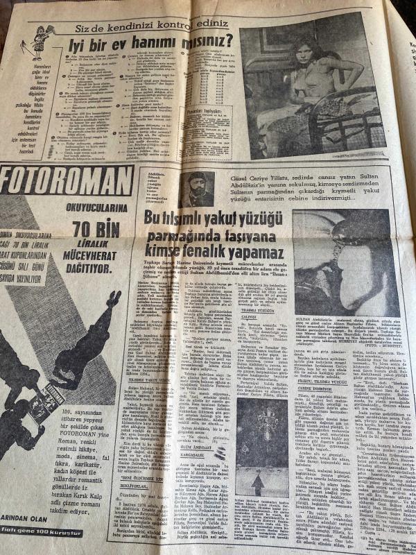 HÜRRİYET GAZETESİ HÜRRİYET PAZAR EXTRA 2 GAZETESİ DOĞUM GÜNÜ GAZETESİ - 24 NİSAN 1966 - Bizimkiler - Fatoş - Güngörmüşler - Kemal Bisalman - Filistu - Sultan Abdülhamid - Cariye Filistu - P. Rosset - Rosset - M. M. Elise - Dr. Rosset - Cennet - Murat Yıldırım - Şah Rıza - Prens Rıza - Prenses Kıyam - Atatürk - Gripin - Bernard Gaubel - S. Rosset - İyi bir ev hanımı mısınız - Bu tılsımlı yakut yüzüğü parmağında taşıyana kimse fenalık yapamaz - Her milletin kadın tipi başka - Anne ben nasıl dünyaya geldim - Şekerli ve hamurlu yiyeceklerden kaçınız - Kalori mühim değil - Erkekler eşlerine yalan söylemeli mi - Bir kraliçe olmak zor - Adale ağrılarına karşı - Cevapsız kalan çeşitli sualler çocuğu kötü meraka sürüklüyor - Kadınlarda ideal vücut ölçüleri - Bir milletin kadın tipi başka - Bu listeyi mutlaka mutfağınıza asın - Rejim size neler kazandıracak - Kendini şişman gören kadının zayıflama rejimi çok yavaş olmalı sarsılmamalı ve mutlaka doktor kontrolünde olmalıdır adlı eser, Kitap > Süreli Yayınlar > Gazeteler > Türkiye > Genel > Günlük kategorisinde İkinci El olarak satıştadır.