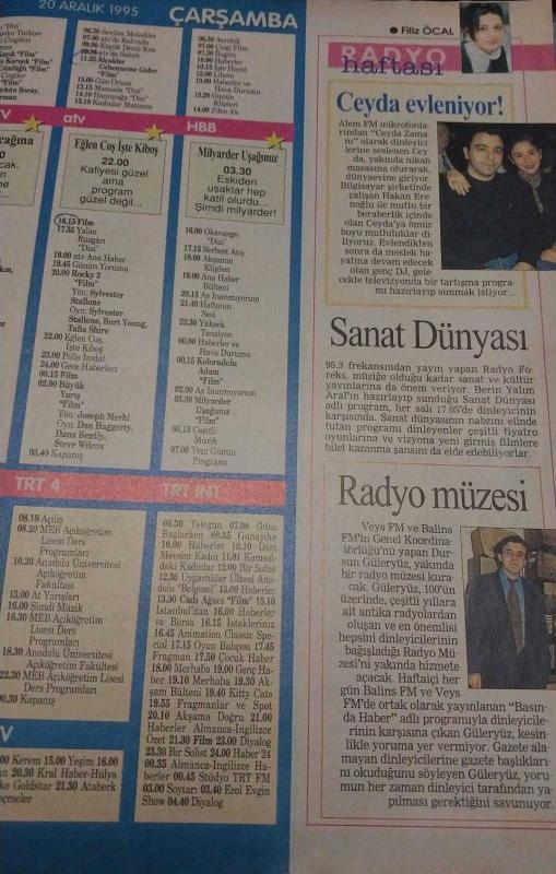Kitap 1995 yılında yayınlanmıştır. 32 sayfadır. HÜRRİYET GAZETESİ-TELESKOP DERGİSİ-TELEVİZYON EK-15 ARALIK-22 ARALIK-1995-KAPAK-FOTOĞRAF-RÖPORTAJ-AYDAN BURHAN-ERKAN CAN-MAHALLENİN MUHTARLARI-MASKE-HAFTANIN FİLMİ-USLANMAZ AŞIKLAR-EVİMİZ HOLLYWOODDA-ŞEHNAZ TANGO-TEKİN AKMANSOY-İPEK GÜMÜŞOĞLU-BÜLENT KAYABAŞ-TUNCAY AKÇA-İLYAS SALMAN-GAFFUR UZUNER-SİLİFKE-ADNAN ŞENSES-ÇOŞKUN ARAL-ALEM FM-CEYDA ZAMANI-RADYO FOREKS-RADYO MÜZESİ-BELKIS ÜNLEN-YAŞAYAN ŞİİRİMİZ-TARIK GÜRCAN-EDİZ HUN-PORTRECESUR VE GÜZEL-YALAN RÜZGARI-VAHŞİ KALPLER-PEMBE DİZİLER adlı eser Türkçe dilindedir.