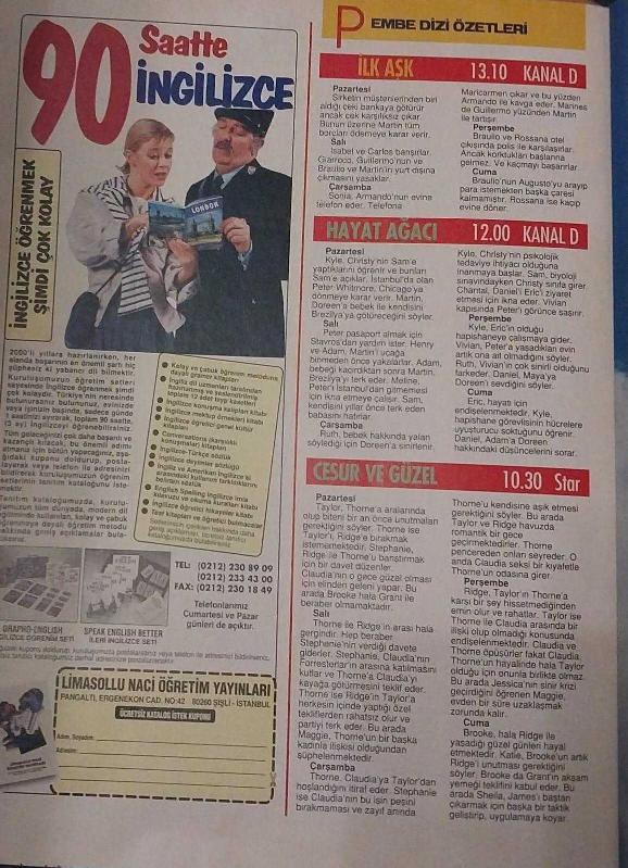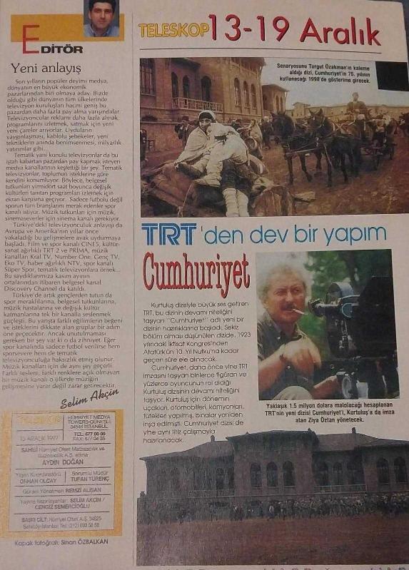 Kitap 1997 yılında yayınlanmıştır. 32 sayfadır. HÜRRİYET GAZETESİ-TELESKOP DERGİSİ-TELEVİZYON EKİ-13 ARALIK-19 ARALIK-1997-KAPAK-FOTOĞRAF-RÖPORTAJ-DİDEM UZEL-BEST MODEL-DENİZ AKKAYA-KENAN İMİRZALIOĞLU-BEKİR ÇOŞKUN-ŞEHNAZ TANGO-MERVE İLDENİZ-AKASYA PASAJI-CUMHURİYET-DÜNYA KÜLTÜRLERİ-HÜLYA DARCAN-GAP-PERRAN KUTMAN-AYDAN BURHAN-HÜLYA AVŞAR-HAVAALANI-BALIKÇI KRAL-ÖLÜM TRENİ-PEMBE DİZİLER-İLK AŞK-HAYAT AĞACI-CESUR VE GÜZEL adlı eser Türkçe dilindedir.