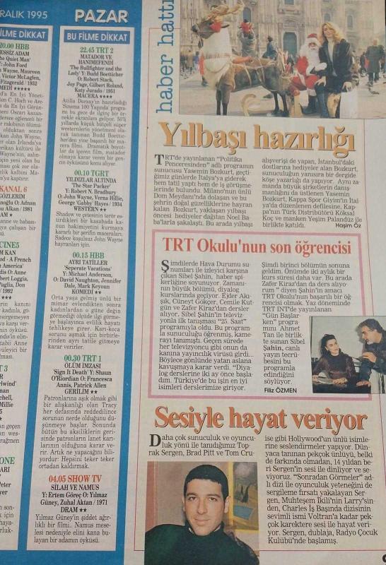 Kitap 1995 yılında yayınlanmıştır. 32 sayfadır. HÜRRİYET GAZETESİ-TELESKOP DERGİSİ-TELEVİZYON EKİ-23 ARALIK-29 ARALIK-1995-KAPAK-FOTOĞRAF-RÖPORTAJ-JAMES BOND-BEYAZ PERDE-BALIKÇI KRAL-SİBEL TURNAGÖL-HALİT KIVANÇ-ÇİÇEK DİLLİGİL-GÜLÇİN HATIHAN-YILBAŞI HAZIRLIĞI-TOPRAK SERGEN-BERNA LAÇİN-KAPRİS-ZEYNEP GÖNENÇ-YAĞLI GÜREŞ-ÖDÜL-17.PALERMO ULUSLARARASI SPOR FİLMLERİ-YARIŞMA-GÜMÜŞ ŞÖVALYE-ASIM SÜREYYA ÜVEZ-PAYENDE ÇİZMECİ-PORTE-RİTA HAYWORTH-PEMBE DİZİLER-VAHŞİ KALPLER-CESUR VE GÜZEL-YALAN RÜZGARI-BULUTSUZLUK ÖZLEMİ adlı eser Türkçe dilindedir.