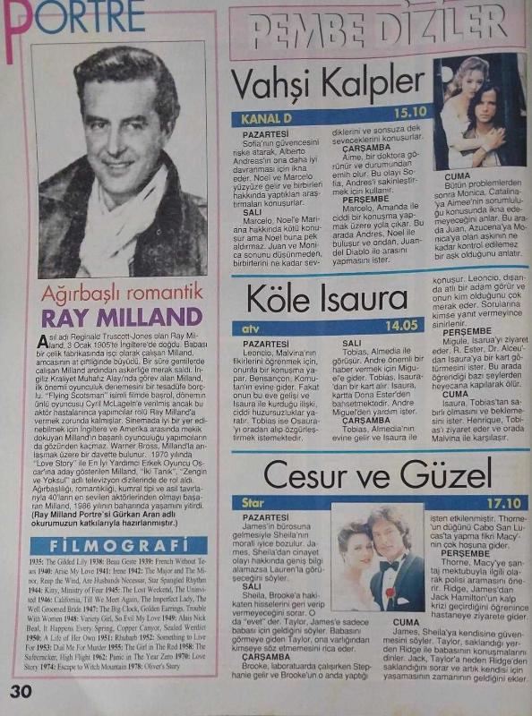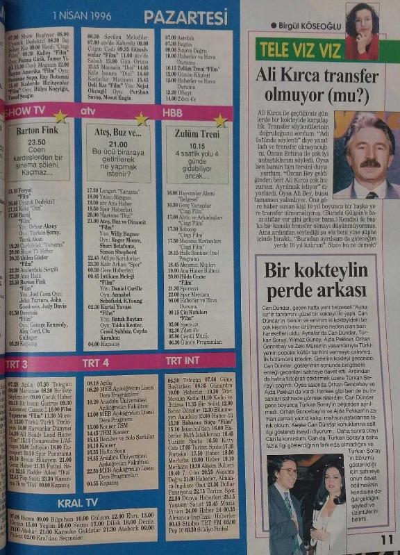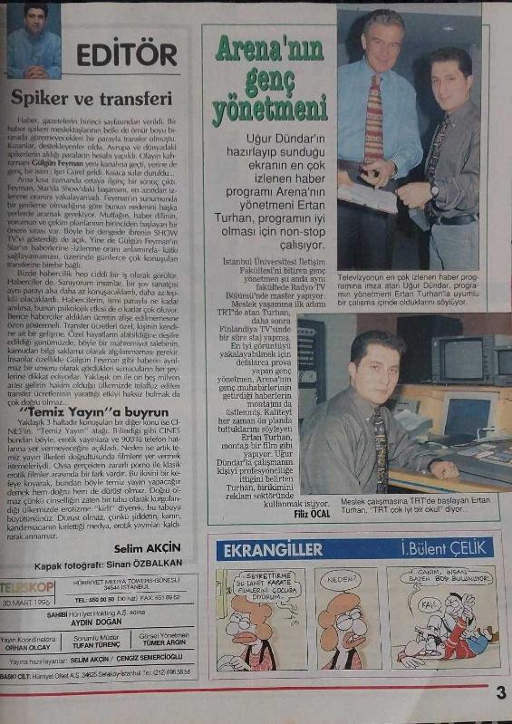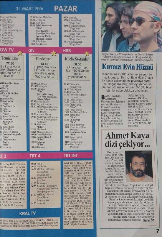 Kitap 1996 yılında yayınlanmıştır. 32 sayfadır. HÜRRİYET GAZETESİ-TELESKOP DERGİSİ-TELEVİZYON EKİ-30 MART-5 NİSAN-1996-KAPAK-FOTOĞRAF-RÖPORTAJ-TV PROGRAM FİLM VE UYDU-HAFTANIN FİLMİ-DALGALARIN PRENSİ-BEYAZ ŞİMDİ BEYAZ ÖTESİ-BEYAZIT ÖZTÜRK-ARENA'NIN GENÇ YÖNETMENI-UĞUR DÜNDAR-TELEFONDA 5 DAKIKA-SERHAT HACIPAŞALIOĞLU-EBRU YORGANCIOĞLU-SON KUMPANYA-EBRU GÜNDEŞ-DİZİ İÇİN ARABA YAKILDI-KIRMIZI EVİN HÜZNÜ-BOĞAÇ KÖKBAŞ-CÜNEYT AYDAN-SERHAT SÖZERİ-AHMET KAYA-EKRANA ABONE-ECE USLU-FADİME BAŞKAN OLDU-ALİ KIRCA-TRANSFER OLMUYOR MU-BİR KOKTEYLİN PERDE ARKASI-CAN DÜNDAR-TÜRKAN ŞORAY-CAPITAL RADYO YÜKSELIYOR-SESTEN ÇİZGİLER-PORTRE-AĞIRBAŞLI ROMANTİK-RAY MILLAND-PEMBE DİZİLER-VAHŞİ KALPLER-KOLE ISAURA-CESUR VE GÜZEL adlı eser Türkçe dilindedir.