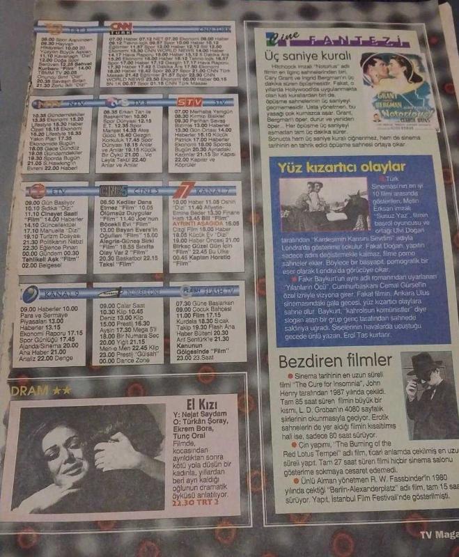 Kitap 1999 yılında yayınlanmıştır. 6 sayfadır. HÜRRİYET GAZETESİ-TV MAGAZİN DERGİSİ-30 EKİM-1999-KAPAK-FOTOĞRAF-RÖPORTAJ-SEREN SERENGİL-ÜÇ SANİYE KURALI-NOTORİUS-YÜZ KIZARTICI OLAYLAR-BEZDİREN FİLMLER-EL KIZI-YILAN HİKAYESİ-İKİ KADIN-GÖLGE BUNALIMI adlı eser Türkçe dilindedir.