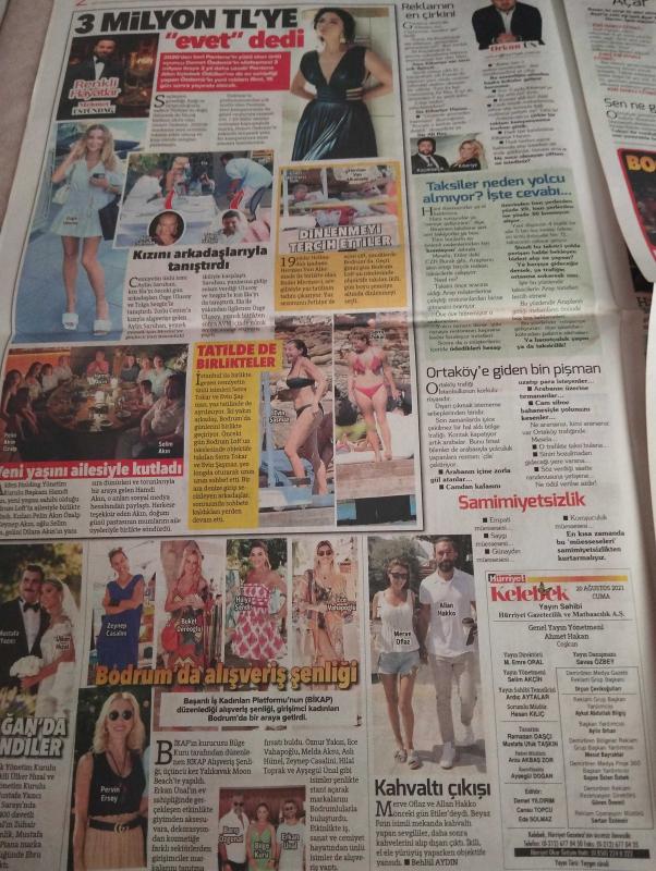 HÜRRİYET KELEBEK GAZETESİ - 20 Ağustos 2020 -Serenay Sarıkaya-İrem Derici-Ali Kırca-Dilek Pehlivan-Cedi Osman-Ebru Şahin-Kutsi-Canan Doğulu-Ozan Doğulu-Arya-Mehmet Üstündağ-Demet Özdemir-Orkun Ün-Özge Özpirinçci-Aslı Şen-Hamdi Akın-Pelin Akil-Selim Bayraktar-Sertaç Bozkurt-Zeynep Özyağcılar-Buket Dereoğlu-Ece Vahapoğlu-Melike Kökten-Hülya Şen-Alan Hakko-Merve Oflaz-Hande Soral-Şükran Ovalı-Şükrü Ozyıldız-Tuğba Özerk-İlyas Salman-Hakan Altun-Evgeny Grinko-Gülşar Tutunamayan-Hadise-Kıvanç Tatlıtuğ-Öykü Karayel-Emine-Emrah-Dilek Sabancı-Nova Norda-İlker Aksum-Biran Damla Yılmaz-Suna Dumankaya-Ayta Sözeri-Serhat Akın-Can Bonomo-Roman-Michele Morrone-Kenan Doğulu-Akın Akınözü-Cemre Kıbrıs-Onur Baştürk-Levent Üzümcü-Ajda Pekkan-Aygül Aydın-Neden sustular-Komşu’dan günaydın-Sete hazırlık-3 milyon liraya evet dedi-En sevdiğim kızlar-Savaşçı prenses-Bende kıskançlık yok-Kızını arkadaşlarıyla tanıştırdı-Yeni yaşını ailesiyle kutladı-Tatilde birlikte-Ortaköy’e giden bin pişman-Boğaz’da piyano adlı eser, Kitap > Süreli Yayınlar > Gazeteler > Türkiye > Genel > Günlük kategorisinde İkinci El olarak satıştadır.