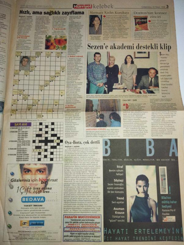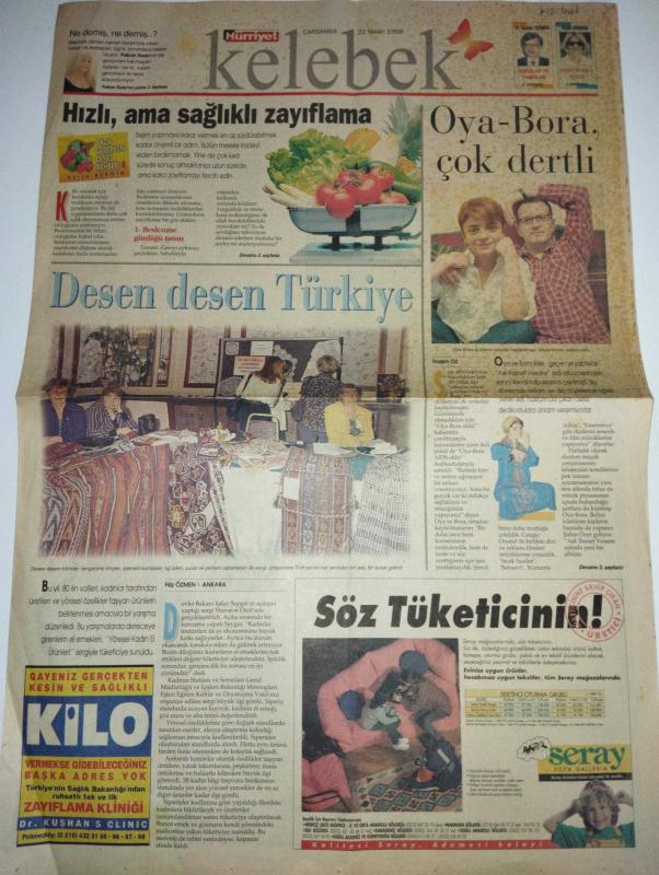 HÜRRİYET KELEBEK GAZETESİ -22 Nisan 1998-Oya ve Bora ikilisi-Haşim Öz-Ayşe Arman-Yasemin boran-gündüz Tezmenle sağlık-güzin abla-Şirin alışverişte-Güngörmüşler-fatoş-bizimkiler-dedektif nik-püf noktası-günün filmleri-söz tüketicinin-pakize Suda-hızlanma sağlıklı zayıflama-azize Belgin-Sezen Aksu-Sezen Akademi destekli klip-CHP kadın kolları Genel başkanı güldal okuducu-flörte teşvik ediyorsunuz-jandarma korudu-Çember daralıyor-Ayşe’ye umut doğurdu-kaynanalar komedi dizisi-süper polis yabancıfilm-Ömer Önder-safa Önal-Bülent Tan-Mustafa Balbay-karakutu açılınca-Selim akçin-sayfa sayısı dört tür adlı eser Türkçe dilindedir. Eserin içeriğinde Türkçe dilinde bölümlere de yer verilmektedir.