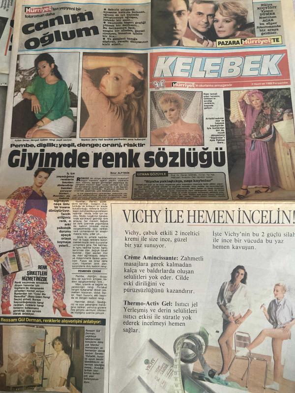 HÜRRİYET KELEBEK GAZETESİ DOĞUM GÜNÜ GAZETESİ - 2 HAZİRAN 1988 - Aydan Şener-giyimde renk Sözlüğü-İlknur alptekin-gül Derman-Hülya Koçyiğit-Yalçın Dümer-Neslihan acar-memo-Mesut Çakarlı-didem Bülbül-fakir çocuklara kermes desteği-buz kraliçesi Katerina-birden pantolonun yırtıldığını hissettiği-ustaya saygı-mimar Sinan-Wendy Hiller-Mark Harmon-muhteşem Süleyman-kurtar beni-Gülşen Bubikoğlu-Talat Bulut-Tanju gürsu-Nuri alço-fatoş Sezer-Mustafa Kutlu-bizimkiler-Güngörmüşler-fatoş-, Sedat Simavi tarafından kaleme alınmıştır. HÜRRİYET KELEBEK GAZETESİ DOĞUM GÜNÜ GAZETESİ - 2 HAZİRAN 1988 - Aydan Şener-giyimde renk Sözlüğü-İlknur alptekin-gül Derman-Hülya Koçyiğit-Yalçın Dümer-Neslihan acar-memo-Mesut Çakarlı-didem Bülbül-fakir çocuklara kermes desteği-buz kraliçesi Katerina-birden pantolonun yırtıldığını hissettiği-ustaya saygı-mimar Sinan-Wendy Hiller-Mark Harmon-muhteşem Süleyman-kurtar beni-Gülşen Bubikoğlu-Talat Bulut-Tanju gürsu-Nuri alço-fatoş Sezer-Mustafa Kutlu-bizimkiler-Güngörmüşler-fatoş- adlı eser Türkçe dilindedir.