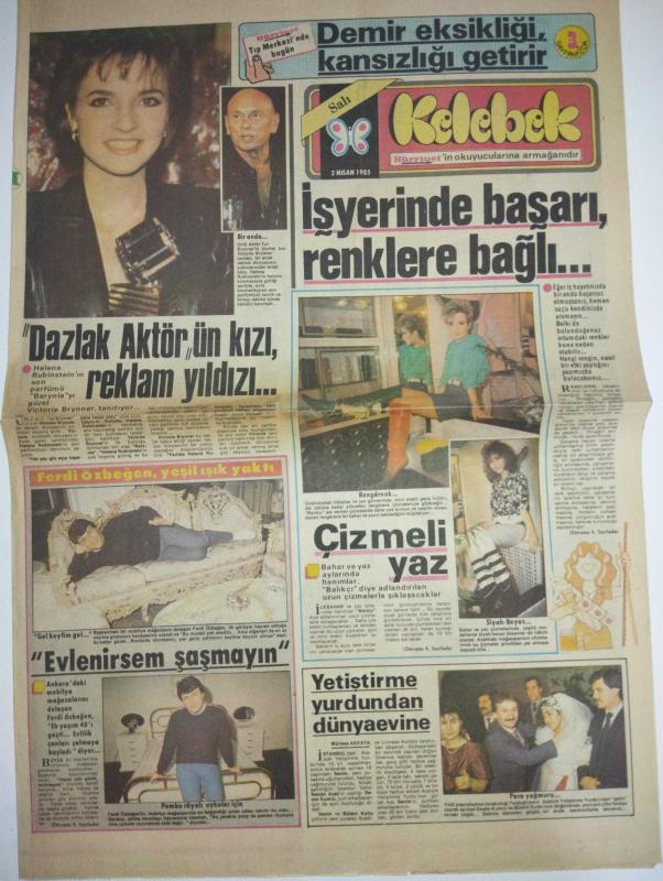 HÜRRİYET KELEBEK GAZETESİ DOĞUM GÜNÜ GAZETESİ-2 Nisan 1985-Helena Rubinstein-Victorie Brynner-Ferdi Özbeğen-Mümtaz Akkaya-Fatma Girik-Memduh Ün-Muhlisem Demirağ-Uğur Süer-Nevzat Ayfaz-Semi Elitaş-Salih Kırmızı-Gani Turanlı-Safa Önal-Zeki Alpan-Sunay Ege-Erdem Barutcu-Buğur Danacıoğlu-Tümer Akan-Mesut Çakarlı-Cemil-İffet-Cigdem-Uğur Özkan-Gülsen-Halet Rızaaki-Adile Naşit-Oktay Arayıcı-Talat Bulut-İsmet Özcan Özgür-Bülent Bilgiç-Sezen Aksu-Samim Değer-Selçuk Turanlı-Kamil Başaran-İnsaf Hanım-Sıtkı-Hülya-Karikatüristler: Semih Balcıoğlu-Hüseyin Yurttaş-İsmail Kar-Ercan Arıklı Dazlak Aktör’ün kızı reklam yıldızı-İşyerinde başarı renklere bağlı-Ferdi Özbeğen yeşil ışık yaktı-Evlenirsem şaşmayın-Cizmeli yaz-Yetiştirme yurdundan dünyaevi-Vurun Kahpeye-MEMO-Beyaz Gece-Kaderin cilveleri-Oğlumun kısmetisin-Rumuz Goncagül-Günlük Dalga-Naber-Nolsun-Yağa zam geldi-Düzeltemem arıyorum-Köpeğinizi temizlerken-Bu adam ne yapıyor-Ördek dansından sonra şimdi de köpek dansı-BIZIMKILER-FATOŞ-COPYRIGHT H.Y adlı eser, Kitap > Süreli Yayınlar > Gazeteler > Türkiye > Genel > Günlük kategorisinde İkinci El olarak satıştadır.