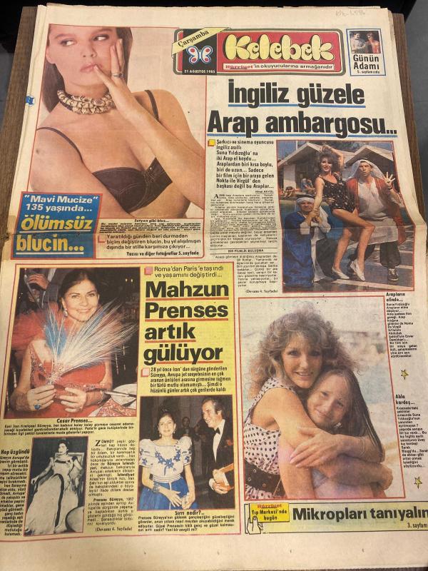 HÜRRİYET KELEBEK GAZETESİ DOĞUM GÜNÜ GAZETESİ - 21 AĞUSTOS 1985 - Suna Yıldızoğlu-İngiliz güzele Arap ambargosu-Prenses süreyya-Eski İran Kraliçesi Süreyya-Cüneyt Arkın-Zümrüt Cansel-Nefret-Eray Özbal-Mine Sun-Serdar Cem-Huysuz Virjin-Mesut Çakarlı-Cevat kurtuluş-Cevdet balıkçı-Çetin Başaran-Yener Çakmak-Selim ileri-Hayal ve ıstırap-manikürünüzü kendiniz de yapabilirsiniz-Alpago-Metin soysal-Fikret kol-Kelebek Falınız-Aile albümü-Danielle steel-Cemal Dündar-Şakir Coşkuner-Dişlerinizi böyle kurtarın-Yara kapatılması-fıkra tarlabaşı-Günün adamı-Ali Poyrazoğlu-Duygu ankara-Zerrin sümer-Blucinin doğuşu-Ebe ikincişübe-çiçekçinin kızı-Adile naşit-Kartal tibet-Ekrem bora-Nilgün akçaoğlu-Bizimkiler-Fatoş-Güngörmüşler-Dedektif Nik-Sayfa sayısı 6 dır, Sedat Simavi tarafından kaleme alınmıştır. HÜRRİYET KELEBEK GAZETESİ DOĞUM GÜNÜ GAZETESİ - 21 AĞUSTOS 1985 - Suna Yıldızoğlu-İngiliz güzele Arap ambargosu-Prenses süreyya-Eski İran Kraliçesi Süreyya-Cüneyt Arkın-Zümrüt Cansel-Nefret-Eray Özbal-Mine Sun-Serdar Cem-Huysuz Virjin-Mesut Çakarlı-Cevat kurtuluş-Cevdet balıkçı-Çetin Başaran-Yener Çakmak-Selim ileri-Hayal ve ıstırap-manikürünüzü kendiniz de yapabilirsiniz-Alpago-Metin soysal-Fikret kol-Kelebek Falınız-Aile albümü-Danielle steel-Cemal Dündar-Şakir Coşkuner-Dişlerinizi böyle kurtarın-Yara kapatılması-fıkra tarlabaşı-Günün adamı-Ali Poyrazoğlu-Duygu ankara-Zerrin sümer-Blucinin doğuşu-Ebe ikincişübe-çiçekçinin kızı-Adile naşit-Kartal tibet-Ekrem bora-Nilgün akçaoğlu-Bizimkiler-Fatoş-Güngörmüşler-Dedektif Nik-Sayfa sayısı 6 dır adlı eser Türkçe dilindedir. Eserin içeriğinde Türkçe dilinde bölümlere de yer verilmektedir.