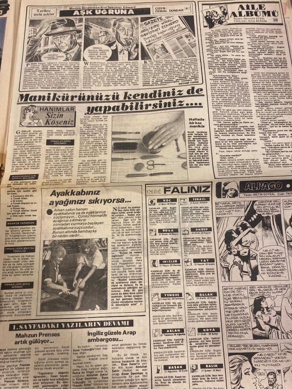 HÜRRİYET KELEBEK GAZETESİ DOĞUM GÜNÜ GAZETESİ - 21 AĞUSTOS 1985 - Suna Yıldızoğlu-İngiliz güzele Arap ambargosu-Prenses süreyya-Eski İran Kraliçesi Süreyya-Cüneyt Arkın-Zümrüt Cansel-Nefret-Eray Özbal-Mine Sun-Serdar Cem-Huysuz Virjin-Mesut Çakarlı-Cevat kurtuluş-Cevdet balıkçı-Çetin Başaran-Yener Çakmak-Selim ileri-Hayal ve ıstırap-manikürünüzü kendiniz de yapabilirsiniz-Alpago-Metin soysal-Fikret kol-Kelebek Falınız-Aile albümü-Danielle steel-Cemal Dündar-Şakir Coşkuner-Dişlerinizi böyle kurtarın-Yara kapatılması-fıkra tarlabaşı-Günün adamı-Ali Poyrazoğlu-Duygu ankara-Zerrin sümer-Blucinin doğuşu-Ebe ikincişübe-çiçekçinin kızı-Adile naşit-Kartal tibet-Ekrem bora-Nilgün akçaoğlu-Bizimkiler-Fatoş-Güngörmüşler-Dedektif Nik-Sayfa sayısı 6 dır adlı eser, Kitap > Süreli Yayınlar > Gazeteler > Türkiye > Genel > Günlük kategorisinde İkinci El olarak satıştadır.