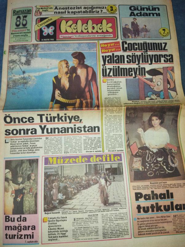 HÜRRİYET KELEBEK GAZETESİ DOĞUM GÜNÜ GAZETESI-22 Mayıs 1985-Ahmet Özhan-Burhan Felek-Dr. Tayyat Altıkulaç-Sevim Gelenbe-Diler Saraç-Eda Kazmırcı-Muharrem Gürses-Hüseyin Peyda-Vecdi Uygun-Mehmet Güneş-Cemal Dündar-Metin Soysal-Fikret Kula-Güner Sümer-Samim Değer-Ece Aksoy-Yalçın Ener-Nazan Adalı-Turgut Boralı-Sedef Dedü-Yüksel Gözen-Ayşe Demirel-Orçun Sonat-Hayva Kopan-Mehmet Erikçi-Mesut Çakarlı-Mustafa Koçl-Küçük Ceylan-Nurcihan Yalvaç-Bahar Zoral-Birün Buranoğlu-Uğur Danioğlu-Cem Çakmak-Sabahat Doğanayımız-Selim Naşit-Selçuk Sonat-Handan Adalı-Mümtaz İhsan-Vehbi Cem-Hülya Süer-Nilüfer aydan-Ahmet mekin-neriman Köksal-gülen Konukoğlu-Doğan Şen-Çağla Çetiner-Hayri Caner-Atacan arseven-II Ayın Sultanı Hoş Geldin-Yaşadığım Ramazanlar-Mübarek Ramazan-Ramazan renkli 2 tam sayfa-Hz. İbrahim-Günün Adamı-Çocuğunuz yalan söylüyorsa üzülmeyin-Önce Türkiye sonra Yunanistan-Müzede defile-Pahalı tutkular-Bozuk Düzen-Bir Sporcu Yetişiyor-Memo Gülen Bebek-Stromboli Aşıkları-Mübarek Ramazan-Küçük Aca adlı eser Türkçe dilindedir. Eserin içeriğinde Türkçe dilinde bölümlere de yer verilmektedir.
