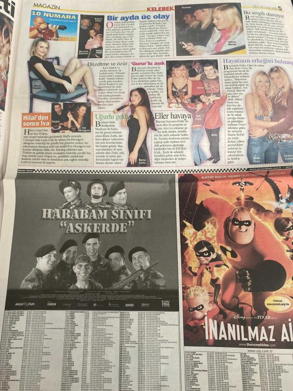 HÜRRİYET KELEBEK GAZETESİ DOĞUM GÜNÜ GAZETESİ - 25 OCAK 2005 - Prof.Dr.Ahmet Aydın-Deniz Akkaya-Demet Akbağ-Deniz Çakır-Seda Akman-Çağla Kubat-Rıza Eren-Özlem Uzel-Kenan Işık-Tuğçe Kazaz-Kerim Tekin-Evrim Erbil-Sezer Sezin-Volkan Severcan-Ahu Orakçıoğlu-Kubilay Keskin-Erdal Acar-Ece Gürsel-Yelda Kırçuval-Berrak Tüzünataç-Selim İleri-Banu Zorlu-Seda Üren-Sinem Kobal-Doğuş-Hilal Cebeci-Cenk Tezel-Rıza Eren-Müge Arlı-Kenan Erçetingöz-Sinan Erdem-Ata Demirer-Yılmaz Erdoğan-Ferhat Göçer-Melike Demirağ-Bec Cartwright-Lleyton Hewitt-Nicole Kidman-Şahrap Soysal-Güzin Abla-Feryal Ağar-Sibel Tüzün-Suna Yıldızoğlu-Deniz Seki-Binnaz Avcı-Burcu Kara-Derya Tuna-Demet Akalın-Elif Karlı-Gülben Ergen-Tamer Karadağlı-Diyet Savaşları-Sürpriz itiraf-Floransa’da alkışlar ona-Seda’ya uyarı Çağla’ya veto-Frida Kanal D’de-Sarışın olmayı hiç sevemedim-Didem Uzel aşkını dizi setinde buldu-Hızlı internet isteyen para bulsun-Eş ricasıyla saçlar gitti-Elitler çileden çıktı-Bundan böyle çapkınlık yok- adlı eser Türkçe dilindedir. Eserin içeriğinde Türkçe dilinde bölümlere de yer verilmektedir.