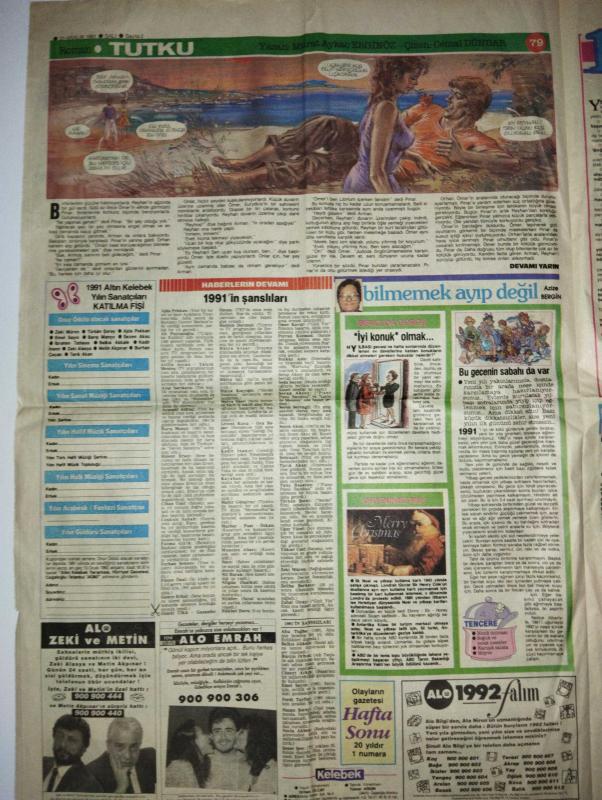 HÜRRİYET KELEBEK GAZETESİ DOĞUM GÜNÜ GAZETESİ-31 Aralık 1991-Sezen Aksu-Uğur Dündar-Semiramis Pekkan-Orhan Gencebay-1991 kime ne getirdi-Tutku-Bilmemek ayıp değil-Bu akşam ne takacaklar-Hünkar beğendi-Tarihte dev hediyeler-Saçlarım dökülüyor-Evlilik köşesi-Cinsel sorunlar-Çaresiz arkadaş üzülmesin-Gel de oynamalım-25. Kare’de sanat olayları-Yaz kampı-Aşık oldum-Bizimkiler karikatürü-copyrıght-güngörmüşler karikatürü-kavanagh-dedektif nik karikatürü-Şato-Fatoş karikatürü-chıcyoung-alpago-Metin soysal-filret kol-günün adamı-Ali Poyrazoğlu-mokok-Memo-mesut çakarlı-didem bülbül-nevzat takmaz-ersin burak-kelebek falınız-azize bergin-doğum günü hediyesi, DİNÇ BİLGİN tarafından kaleme alınmıştır. HÜRRİYET KELEBEK GAZETESİ DOĞUM GÜNÜ GAZETESİ-31 Aralık 1991-Sezen Aksu-Uğur Dündar-Semiramis Pekkan-Orhan Gencebay-1991 kime ne getirdi-Tutku-Bilmemek ayıp değil-Bu akşam ne takacaklar-Hünkar beğendi-Tarihte dev hediyeler-Saçlarım dökülüyor-Evlilik köşesi-Cinsel sorunlar-Çaresiz arkadaş üzülmesin-Gel de oynamalım-25. Kare’de sanat olayları-Yaz kampı-Aşık oldum-Bizimkiler karikatürü-copyrıght-güngörmüşler karikatürü-kavanagh-dedektif nik karikatürü-Şato-Fatoş karikatürü-chıcyoung-alpago-Metin soysal-filret kol-günün adamı-Ali Poyrazoğlu-mokok-Memo-mesut çakarlı-didem bülbül-nevzat takmaz-ersin burak-kelebek falınız-azize bergin-doğum günü hediyesi adlı eser Türkçe dilindedir. Eserin içeriğinde Türkçe dilinde bölümlere de yer verilmektedir.
