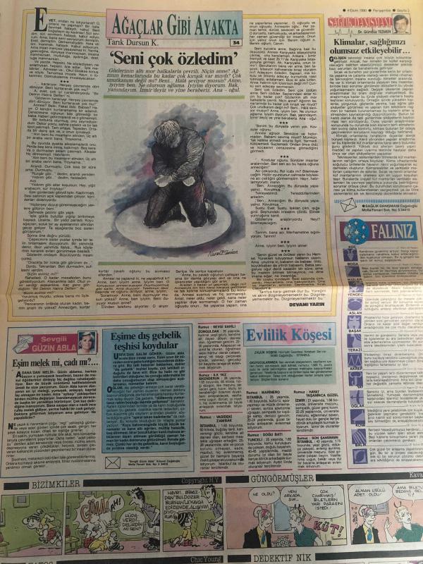 HÜRRİYET KELEBEK GAZETESİ DOĞUM GÜNÜ GAZETESİ - 4 EKİM 1990 - Ajda Pekkan-Güzin Abla-Tarık Dursun K.-Dr. Gündüz Tezmen-Rıdvan Dilmen-Ayşenur Aslan-Nur Yengil-Tugrul Bey-Tülay Yıldız-Liza Minnelli-Harika Avcı-Mariko Mitsui-Emrah-Leyla İslami-Ayşegül Atik-Nurhan İnanlar-Serma Eken-Danielle Steel-Yasemin Ulukurt-Barbara Cartland-Telly Savalas-Victoria Principal-Liz Taylor-Tanju Okan-Gönül Hacer-Yıldız Kenter-Meral Okay-Cem Kurtoğlu-Ayşe Kökçü-Suna Keskin-Emin Gerçeker-Fikret Hakan-Mehmet Ali Erbil-Güzin Uras-Salih Göksel Şok Defile-Kızınız evleniyor-Kalecilikten artistliğe-Sırt ağrıları giderilebilir-Koca izniyle podyuma döndü-İngiliz arabeskle ‘müsterref’ olacak-Minnelli’nin kurtuluşu-Feministin protestosu-Almanya’ya gizli sefer-Evlerde hava kirliliği-Seni çok özledim-Kimyasallar sağlığınızı olumsuz etkileyebilir-Eşime dış gebelik teşhisi koydular-Nerede kalmıştık-Dallas’ta operasyon-Rumen fuhuş pazarı-Özveren’in tatil bitişi-Saffet beni affet-Mesela Muzaffer-Çeşitlemeler-Damdaki Kemanc adlı eser, Kitap > Süreli Yayınlar > Gazeteler kategorisinde İkinci El olarak satıştadır.
