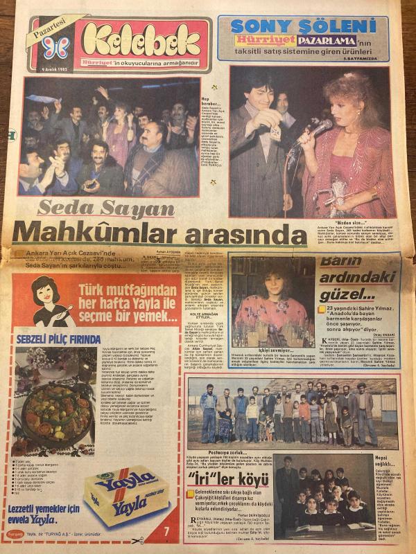 HÜRRİYET KELEBEK GAZETESİ DOĞUM GÜNÜ GAZETESİ - 9 ARALIK 1985 -Seda Sayan-Şahire Yılmaz-Ayşen AYDEMİR-Tulin TURGUT-Yayla-Yılmaz Zafer-Nevhat Çehre-Suna AVCI-Mehmet UN-Serdar GENC-Eser KOCACAN-Ali Poyrazoğlu-Lale Oraloğlu-Cemal Dündar-Metin Sosyal-Fikret Kol-Cüneyt Arkın Mahkûmlar arasında-Barın ardındaki güzel-Sebzeli Piliç Fırında-Lezzetli yemekler için evvela Yayla-Postacıya zorluk…-“İri”ler köyü-Üç Kadın-Vazgeçemem-Kaybolan Gençlik-Ali Poyrazoğlu Tiyatrosu yeni salonunda-Lale Oraloğlu’ndan dört oyun-KISA…KISA…KISA…-Operalar İlhamın Aşkı-Rüyalar İçinde-Alpago Cehenneme Giden Yol adlı eser Türkçe dilindedir.