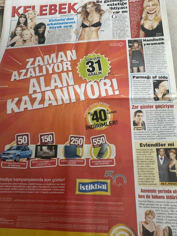 HÜRRİYET KELEBEK GAZETESİ DOĞUM GÜNÜ HEDİYESİ - 25 ARALIK 2007 - Victoria beckham-Sibel Can-Nihat Doğan-Profesör Dr. Osman Müftüoğlu ve yaşasın Hayat ekibi-İlhan mansız-Raphaella Ferraro-Seda Sayan-Bülent Ersoy-Çağlarer erözgen-ömür Gedik-Yasemin hadivent-Ceyda düvenci-İsra gülümser-İzzet Çapa-Mehmet Özer-Tülin Şahin-Erol kaynar-Mustafa Sarıgül-varol kaynar-Şahnaz Çakıralp-Meral Kozakçıoğlu-Vatan Şaşmaz-Nergiz Mizanoğlu-Kubilay keskin-Adnan Polat-İskender ve Sevil Dilek-Şema Çelebi-Seray Sever-Peker Açık’ın-Dilek dallıağ-Murat Çekem-Hande Ataizi-Zülfü Livaneli-ziynet Sali-Ömür Gedik-Şafak Sezer-Ceyda düvenci-Nilüfer Bayram-Evren altınel-Burak Hakkı-Sema Şimşek-Cem Yılmaz-Nilay Dorsa-Neslihan Kara-Ceyda düvenci-sessiz fırtına dizisi-binbir gece dizisi-İbrahim Tatlıses-Seda Sayan-muazzez abacı-Cenk Eren-Gül saygı-Soray uzun-Ömür Gedik-Ferhat Göçer-Bülent Ersoy-Cüneyt Özdemir-Recep Tayyip Erdoğan-Hayko Cepkin-Mor ve Ötesi-Paris Hilton-namussuzum ki namusluyum-aytek Sermet-Fatih erkoç- adlı eser, Kitap > Süreli Yayınlar > Gazeteler > Türkiye > Genel > Günlük kategorisinde İkinci El olarak satıştadır.
