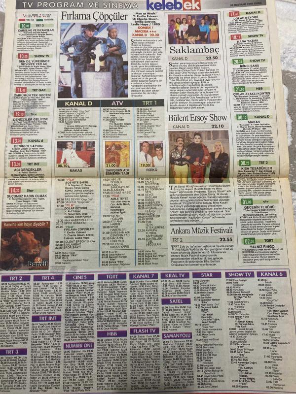 HÜRRİYET KELEBEK GAZETESİ DOĞUM GÜNÜ HEDİYESİ (TURKISH NEWSPAPPER) - 28 HAZİRAN 1996 - SADECE 4 SAYFADIR -Tori Amos-Tekin Aral-Yamaç-Azzedine Alaia-Laura-İdil Çeliker-Didem-Güngör Tezmen-Hayri Caner-Cemal Dündar-Yeşim-İkinci Yüzün Sırrı-Yamaçın gizli planları-Yeşim ve evlilik-Hülya mı Harika mı-İnci inci inciyim reytingte birinciyim-Kantarın topuzu-Fırlama Çöpçüler-Saklambaç-Bülent Ersoy Show-Ankara Müzik Festivali adlı eser Türkçe dilindedir.
