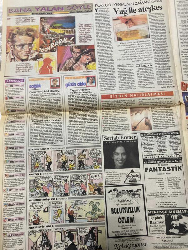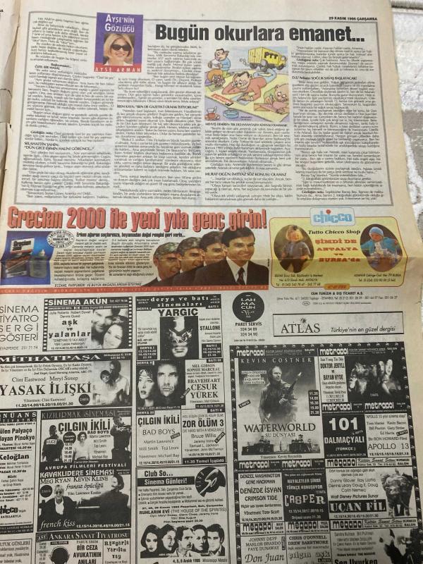 HÜRRİYET KELEBEK GAZETESİ MAGAZİN EKİ DOĞUM GÜNÜ HEDİYESİ (TURKISH NEWSPAPPER) - 29 KASIM 1995 - SADECE 4 SAYFADIR -Uğur Dündar-Ayşe Arman-Deniz Baykal-Necdet Menzir-Merve-Mehmet Ali-Haluk Şahin-Ali Namık-Aydın Özdalga-Sean Bean-Berrin Politi-Melanie Hill-Lori-Molly-Hayri Caner-Cemal Dündar-Azize Bergin-Gündüz Tezmen-Semih Cankurt-Sertab Erener-H.Schmidt-Kemal Çağlar-Güllü Çeliktaş-Binnaz Aydın-Yusuf Toker-Nursun Ünlü-A.Tahsin Çetin-Murat Akar-Esin Talinli-Aykut Çınar-Ufuk Karakoç-Gökhan Yaşar-Anjelik Uygan-Ayhan Ahiskal-Jak Fermon-Julia Roberts-Robert Duvall-Dennis Quaid-Lasse Hallstrom-Clint Eastwood-Meryl Streep-Gülen Palyaço Ağlayan Pinokyo-Keloğlan-Meg Ryan-Kevin Kline-Lawrence Kasdan-Faruk Erem-Rutkay Aziz-Stallone-Armand Assante-Diane Lane-Mel Gibson-Sophie Marceau-Martin Lawrence-Will Smith-Tea Leoni-Michael Bay-Bruce Willis-Jeremy Irons-Samuel L. Jackson-John McTiernan-Meryl Streep-Glenn Close-Jeremy Irons-Bille August-Kevin Costner-Kevin Reynolds-Denzel Washington-Gene Hackma adlı eser Türkçe dilindedir.