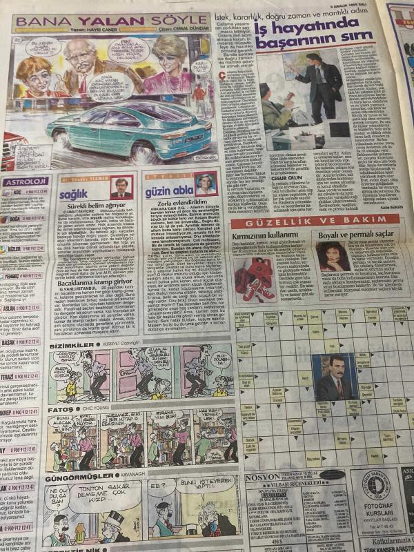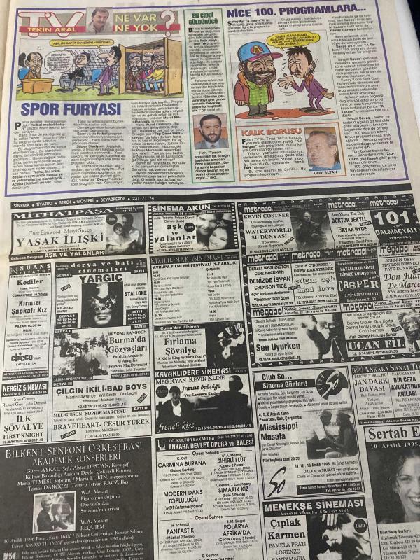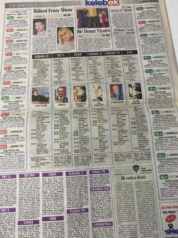 HÜRRİYET KELEBEK GAZETESİ MAGAZİN EKİ DOĞUM GÜNÜ HEDİYESİ (TURKISH NEWSPAPPER) - 5 ARALIK 1995 - SADECE 4 SAYFADIR -Bülent Ersoy-Mahsun Kırmızıgül-Yonca Evcimik-Hayri Caner-Cemal Dündar-Dr Gündüz Tezmen-Cetin Altan-Kevin Costner-Gene Hackman-Clint Eastwood-Meryl Streep-Kişiye özel tedavi-Şifa doğadan gelir-Şimdi herkes bizi konuşacak-Bana yalan söyle-İş hayatında başarının sırrı-Güzellik ve bakım-Ne var ne yok-Spor furyası-Bülent Ersoy Show-Bir Demet Tiyatro-Bir kadın vardır adlı eser Türkçe dilindedir.
