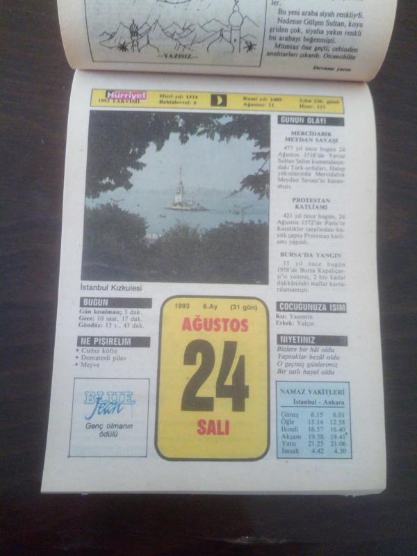 HÜRRİYET TAKVİMİ 24 Ağustos 1993 - DOĞUM GÜNÜ HEDİYESİ HEDİYELİK TAKVİM YAPRAĞI, en son 2 yıl önce güncellenmiştir.