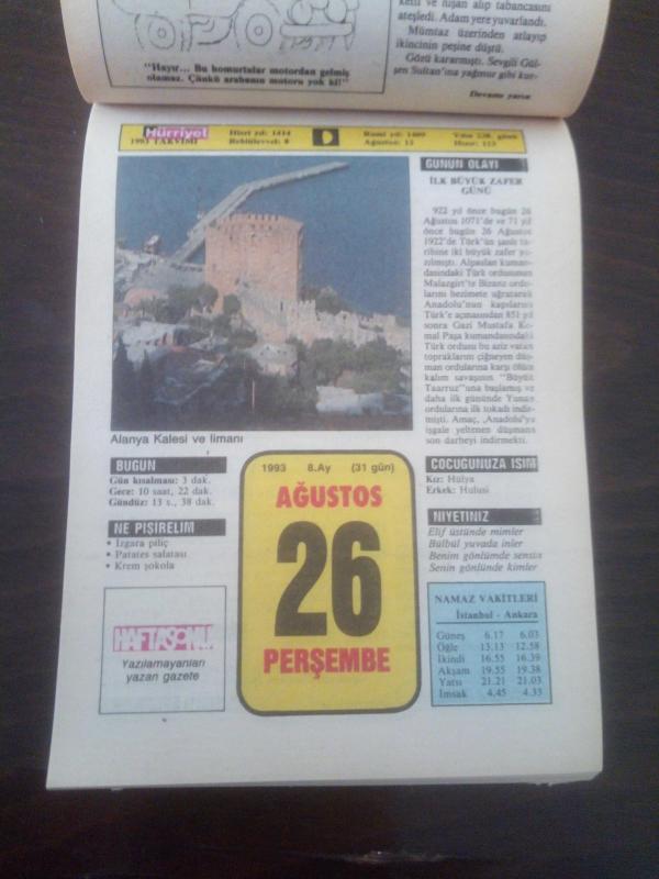 HÜRRİYET TAKVİMİ 26 Ağustos 1993 - DOĞUM GÜNÜ HEDİYESİ HEDİYELİK TAKVİM YAPRAĞI, en son 2 yıl önce güncellenmiştir.