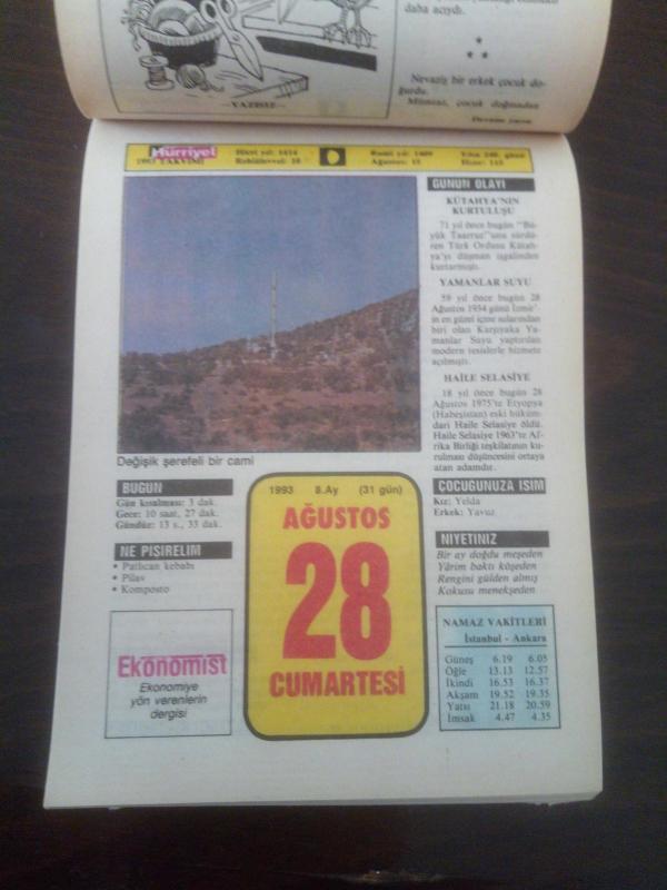 HÜRRİYET TAKVİMİ 28 Ağustos 1993 - DOĞUM GÜNÜ HEDİYESİ HEDİYELİK TAKVİM YAPRAĞI, en son 2 yıl önce güncellenmiştir.