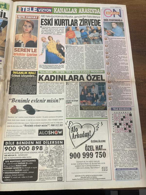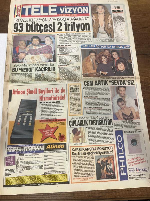HÜRRİYET TELE VİZYON GÜNLÜK TV GAZETESİ DOĞUM GÜNÜ GAZETESİ - 8 ARALIK 1992 -ZEKİ- metin eleştiriler - Salı neşeniz - Cem ile Sevda - meral Oğuz - Ayşenur Aslan - Cansu akbel - 93 bütçesi 2 trilyon- binbaşı barbara - bir yaz macerası - perşembenin gelişi - sürpriz tatil - jean gabin jeanne moreau- dora doll- Aydemir akbaş - Canan barlas - serenle erkekler üzerine - Leyla ismier- gülten dayıoğlu- enis fosfosoğlu- günün yıldızları - TRT’de değişen anlayış - mine engez - benim gibi sev - tırmanış - ikili oyunlar - bir yaz macerası - malın gözü - sürpriz tatil - şabancık adlı eser, Kitap > Süreli Yayınlar > Gazeteler > Türkiye > Genel > Günlük kategorisinde İkinci El olarak satıştadır.