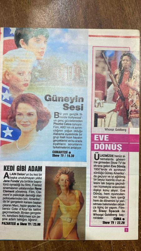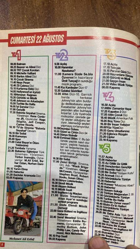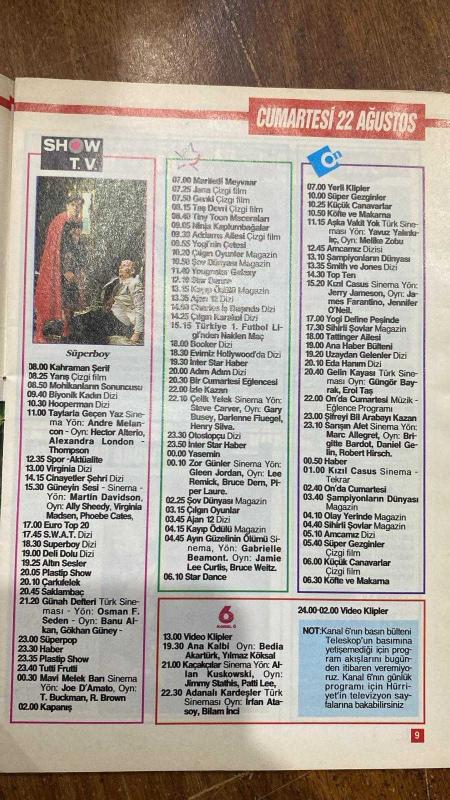 HÜRRİYET TELESKOP TRT, ÖZEL TELEVİZYONLAR VE UYDU PROGAMLARI DERGİSİ - 22/28 AĞUSTOS -TÜRKAN ŞORAY – MURAT SOYDAN – CİHAN ÜNAL – AYHAN IŞIK – ALAIN DELON – JANE FONDA – RENE CLEMENT – PHOEBE CATES – WHOOPI GOLDBERG – SISSY SPACEK – GRECIA COLMENARES – CHERYL LADD – GRACE KELLY – MARILYN MONROE – LAURENCE OLIVIER – JAMES BELUSHI – MEL HARRIS – ROD DANIAL – TOMRİS GİRİT – ZÜLFÜ LİVANELİ – NUR SÜRER – SELÇUK YÖNTEM – MERAL ÇETİNKAYA – TRACI BREGMAN – DOUG DAVIDSON – WILLIAM BELL – BANU ALKAN – GÖKHAN GÜNEY – HARİKA AVCI – EKREM BORA – ENGİN KOÇ – JOE D’AMATO – T. BUCKMAN – R. BROWN – STEVE CARVER – GARY BUSEY – DARLENNE FLUEGEL – HENRY SILVA – GLEEN JORDAN – LEE REMICK – BRUCE DERN – PIPER LAURIE – JAMIE LEE CURTIS – BRUCE WEITZ – BEDIA AKARTÜRK – YILMAZ KÖKSAL – ALLAN KUSKOWSKI – JIMMY STATHIS – PATTI LEE – İRFAN ATASOY – BİLÂL İNCİ – YAVUZ YALINKILIÇ – MELİKE ZOBU – JERRY JAMESON – JAMES FARANTINO – JENNIFER O’NEIL – GÜNGÖR BAYRAK – EROL TAŞ – MARC ALLEGRET – BRIGITTE BARDOT - 48 SAYFA, MEHMET Y. YILMAZ tarafından kaleme alınmıştır. Eser MİNE ENGEZ editörlüğünde hazırlanmıştır. Kitap . tarafından yayınlanmıştır. 48 sayfadır. HÜRRİYET TELESKOP TRT, ÖZEL TELEVİZYONLAR VE UYDU PROGAMLARI DERGİSİ - 22/28 AĞUSTOS -TÜRKAN ŞORAY – MURAT SOYDAN – CİHAN ÜNAL – AYHAN IŞIK – ALAIN DELON – JANE FONDA – RENE CLEMENT – PHOEBE CATES – WHOOPI GOLDBERG – SISSY SPACEK – GRECIA COLMENARES – CHERYL LADD – GRACE KELLY – MARILYN MONROE – LAURENCE OLIVIER – JAMES BELUSHI – MEL HARRIS – ROD DANIAL – TOMRİS GİRİT – ZÜLFÜ LİVANELİ – NUR SÜRER – SELÇUK YÖNTEM – MERAL ÇETİNKAYA – TRACI BREGMAN – DOUG DAVIDSON – WILLIAM BELL – BANU ALKAN – GÖKHAN GÜNEY – HARİKA AVCI – EKREM BORA – ENGİN KOÇ – JOE D’AMATO – T. BUCKMAN – R. BROWN – STEVE CARVER – GARY BUSEY – DARLENNE FLUEGEL – HENRY SILVA – GLEEN JORDAN – LEE REMICK – BRUCE DERN – PIPER LAURIE – JAMIE LEE CURTIS – BRUCE WEITZ – BEDIA AKARTÜRK – YILMAZ KÖKSAL – ALLAN KUSKOWSKI – JIMMY STATHIS – PATTI LEE – İRFAN ATASOY – BİLÂL İNCİ – YAVUZ YALINKILIÇ – MELİKE ZOBU – JERRY JAMESON – JAMES FARANTINO – JENNIFER O’NEIL – GÜNGÖR BAYRAK – EROL TAŞ – MARC ALLEGRET – BRIGITTE BARDOT - 48 SAYFA adlı eser Türkçe dilindedir.