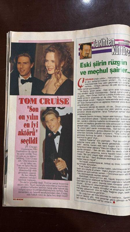HÜRRİYET YENİ SUPER SHOW DERGİSİ - SAYI : 37 - 28 KASIM 1993 - YELİZ - ÖMÜR GEDİK - AYLA CULLU - SİMGE MUTLU - YÜKSEL TÜZÜN - CATHERINE DENEUVE - CLAUDIA SCHIFFER - KIM BASINGER - STEFFI GRAF - CHER - ISABELLA ROSSELLINI - SIGOURNEY WEAVER - CINDY CRAWFORD - KATHLEEN TURNER - MICHELLE PFEIFFER - DOLLY PARTON - SEYYAL TANER - BENGALLİ BAUL ŞARKICILARI YELİZ EVLENMEYE TÖVBELİ: “AŞIK OLMAK İSTİYORUM” - KADIN SAĞLIK REHBERİ: İDRAR YOLLARI ENFEKSİYONLARI - DANIŞMANLIK BÜROLARINDAN GÜVENLİ HİZMET - KNIDOS GEZİSİ - ARAÇTA MÜZİK VE TEHLİKE - HAYVAN BAKIMI: KÖPEKLERDE BİTLENME - AYLA CULLU VE BEBEK BAKIMI - YÜKSEL TÜZÜN’DEN HİZMET SEKTÖRÜ UYARILARI - BIYIK TURİSTİK OLDU - ÜNLÜ MODELLERİN VE SANATÇILARIN “KUSUR” İTİRAFLARI - SEYYAL TANER’İN KASETİ - TÜRK KANANLARI BELGESELİ - AVRUPA’DA BAUL ESİNTİLERİ - TOM CRUISE - NICOLE KIDMAN - MURAT BARDAKÇI - ORHAN VELİ - SAMİM ARIKSOY - FUAT AZGUR - ABDÜLBAKİ GÖLPINARLI TOM CRUISE “SON ON YILIN EN İYİ AKTÖRÜ” SEÇİLDİ - NICOLE KIDMAN İLE ÖDÜL - 46 SAYFA, EROL SİMAVİ tarafından kaleme alınmıştır. Kitap DOĞAN MEDYA CENTER tarafından [İSTANBUL ] yayınlanmıştır. 46 sayfadır. HÜRRİYET YENİ SUPER SHOW DERGİSİ - SAYI : 37 - 28 KASIM 1993 - YELİZ - ÖMÜR GEDİK - AYLA CULLU - SİMGE MUTLU - YÜKSEL TÜZÜN - CATHERINE DENEUVE - CLAUDIA SCHIFFER - KIM BASINGER - STEFFI GRAF - CHER - ISABELLA ROSSELLINI - SIGOURNEY WEAVER - CINDY CRAWFORD - KATHLEEN TURNER - MICHELLE PFEIFFER - DOLLY PARTON - SEYYAL TANER - BENGALLİ BAUL ŞARKICILARI YELİZ EVLENMEYE TÖVBELİ: “AŞIK OLMAK İSTİYORUM” - KADIN SAĞLIK REHBERİ: İDRAR YOLLARI ENFEKSİYONLARI - DANIŞMANLIK BÜROLARINDAN GÜVENLİ HİZMET - KNIDOS GEZİSİ - ARAÇTA MÜZİK VE TEHLİKE - HAYVAN BAKIMI: KÖPEKLERDE BİTLENME - AYLA CULLU VE BEBEK BAKIMI - YÜKSEL TÜZÜN’DEN HİZMET SEKTÖRÜ UYARILARI - BIYIK TURİSTİK OLDU - ÜNLÜ MODELLERİN VE SANATÇILARIN “KUSUR” İTİRAFLARI - SEYYAL TANER’İN KASETİ - TÜRK KANANLARI BELGESELİ - AVRUPA’DA BAUL ESİNTİLERİ - TOM CRUISE - NICOLE KIDMAN - MURAT BARDAKÇI - ORHAN VELİ - SAMİM ARIKSOY - FUAT AZGUR - ABDÜLBAKİ GÖLPINARLI TOM CRUISE “SON ON YILIN EN İYİ AKTÖRÜ” SEÇİLDİ - NICOLE KIDMAN İLE ÖDÜL - 46 SAYFA adlı eser Türkçe dilindedir.