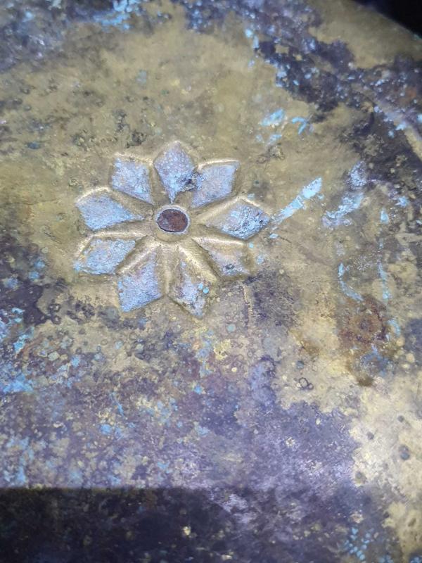 İç deseni Hz. Süleyman Yıldızı (Mühr-ü Süleyman) Yıldız koruyucu motifli Balık motifi (Şifa ve suyun bereketi ) sembolü Arka yüz çiçek motifli geç Osmanlı 1900 ler başı Pirinç hamam tası